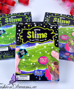 * Komplektis olemas selleks kõik vajalik – sobilik liim, borax pulber, sädelus pulber, helendav pulber, värvaine, mõõdutopsik, kaanega karbikesed ja segamis spaatlid