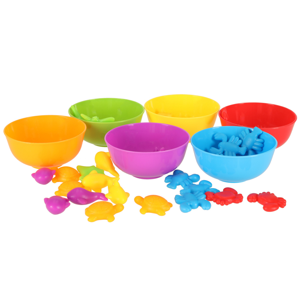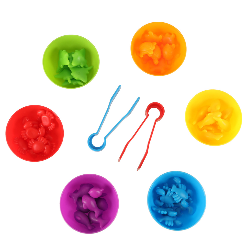 Värvide sobitamine ja sorteerimine – mereloomade ja topsikute abil on lihtne harjutada värvide eristamist ning esemete rühmitamist (nt värvi, koguse või “liigi” järgi).
