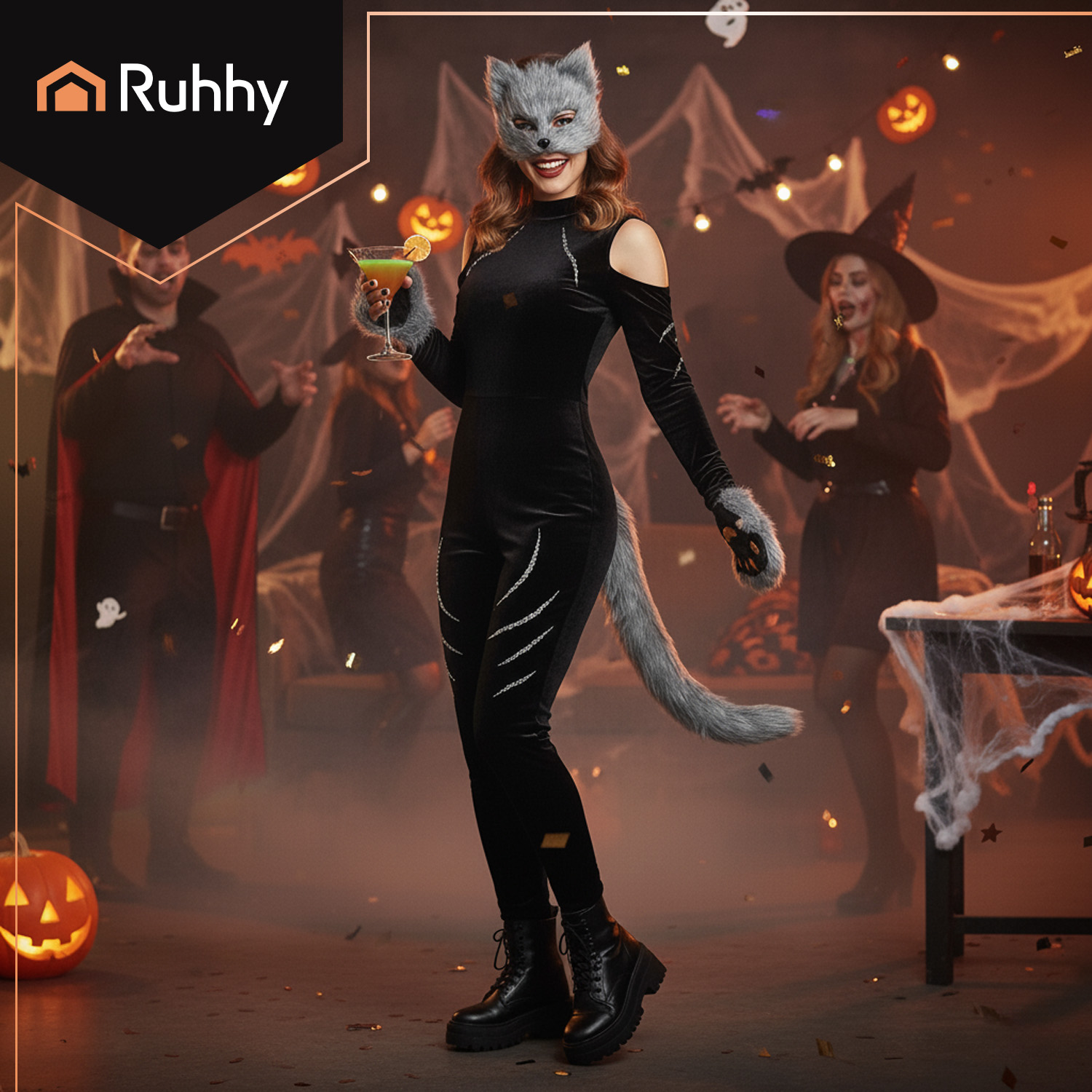 Täielik 4in1 komplekt – komplektis on mask, saba ja käpikud, mis loovad koos ainulaadse loomaliku välimuse. Sobib hundiks, halliks kassiks või koeraks kehastumiseks.