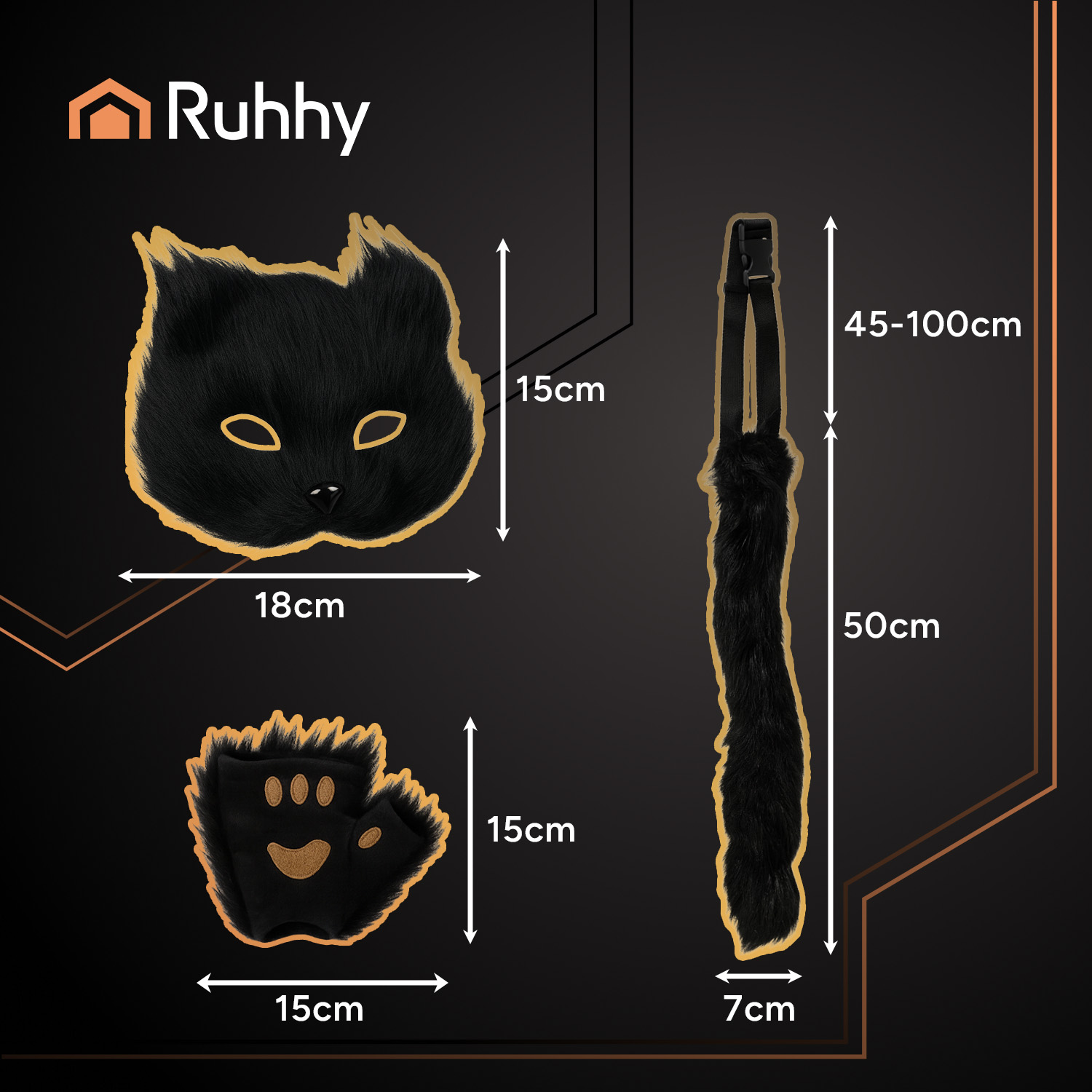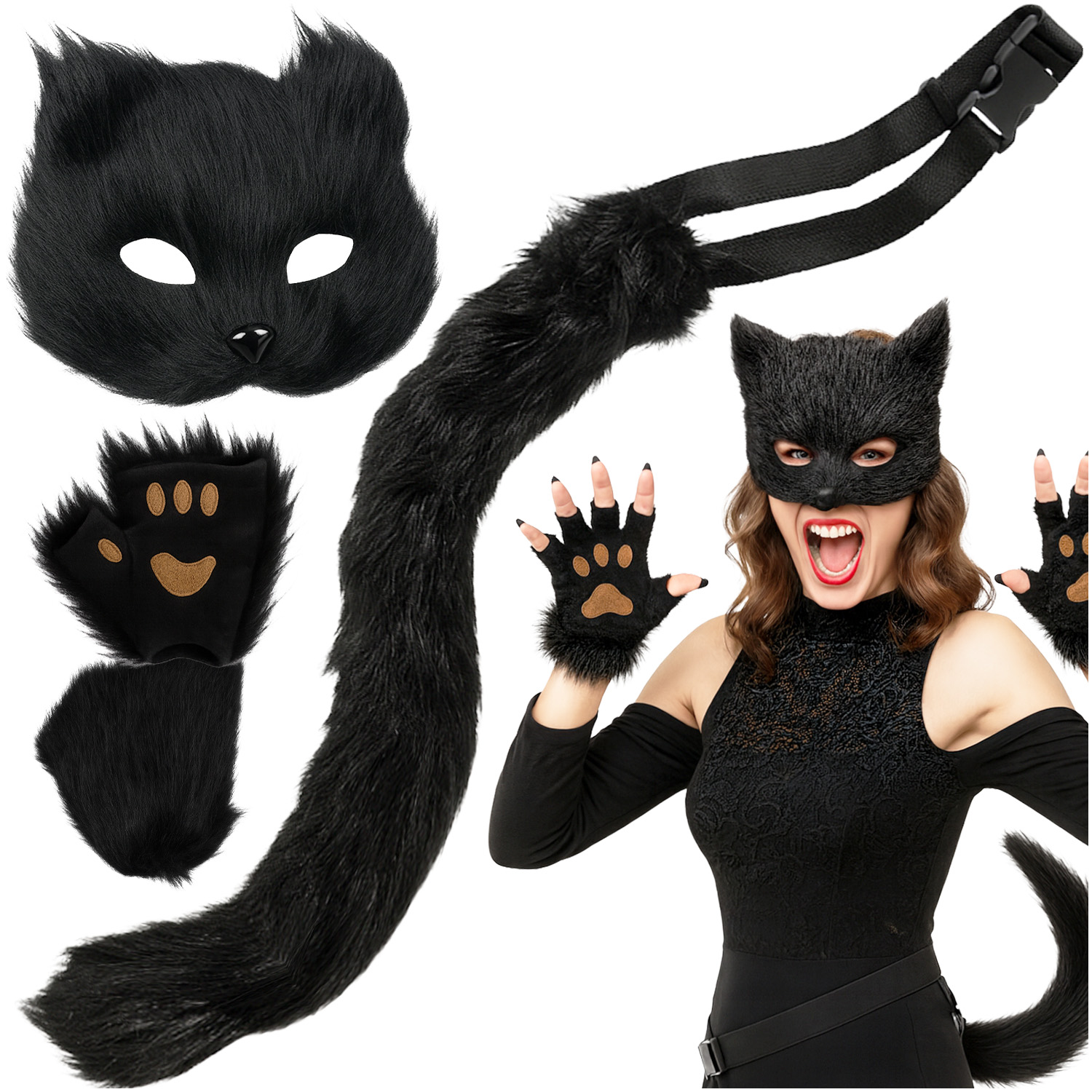 Täielik 4in1 komplekt – komplektis on mask, saba ja käpikud, mis loovad koos ainulaadse loomaliku välimuse. Sobib kassiks, pantriks vms kehastumiseks,