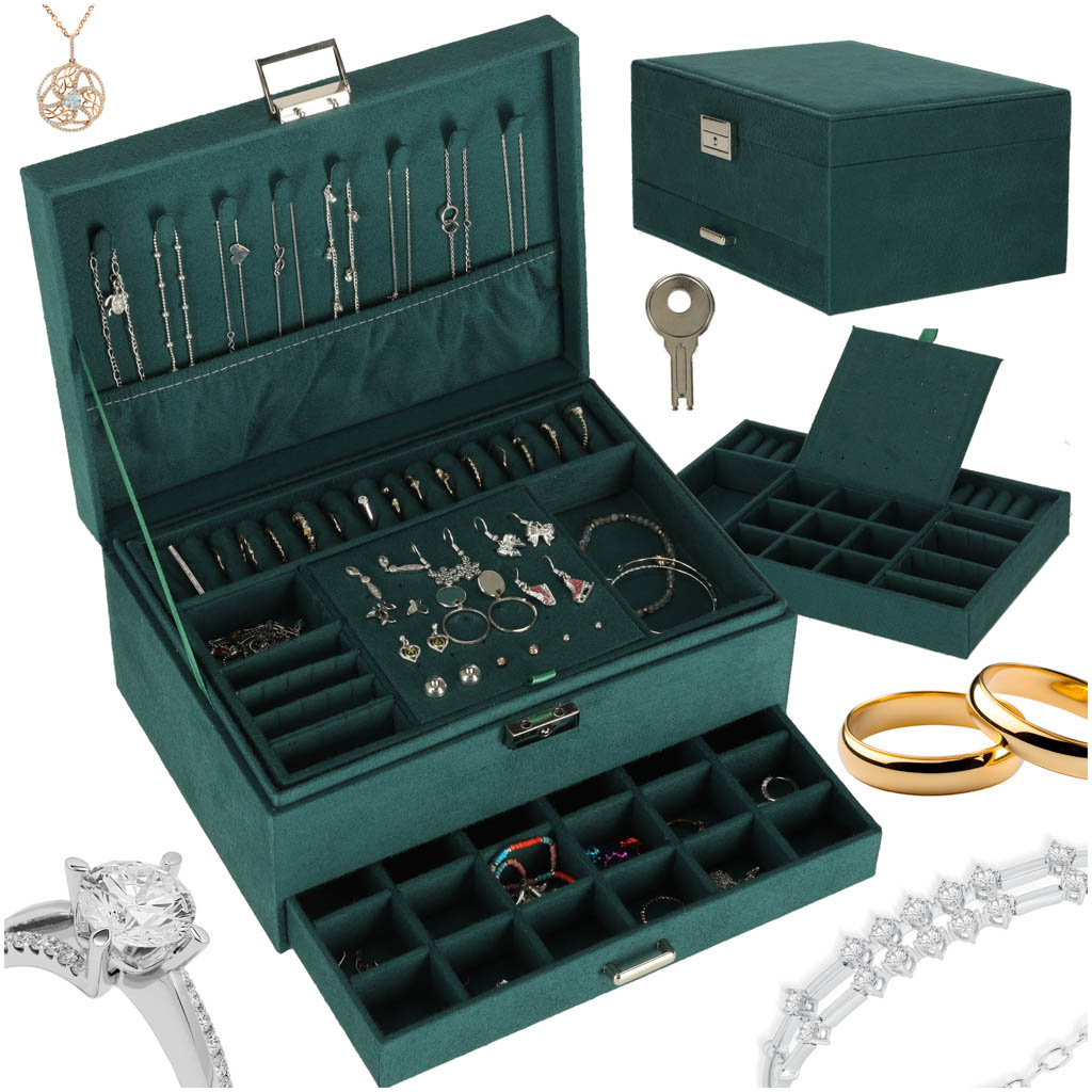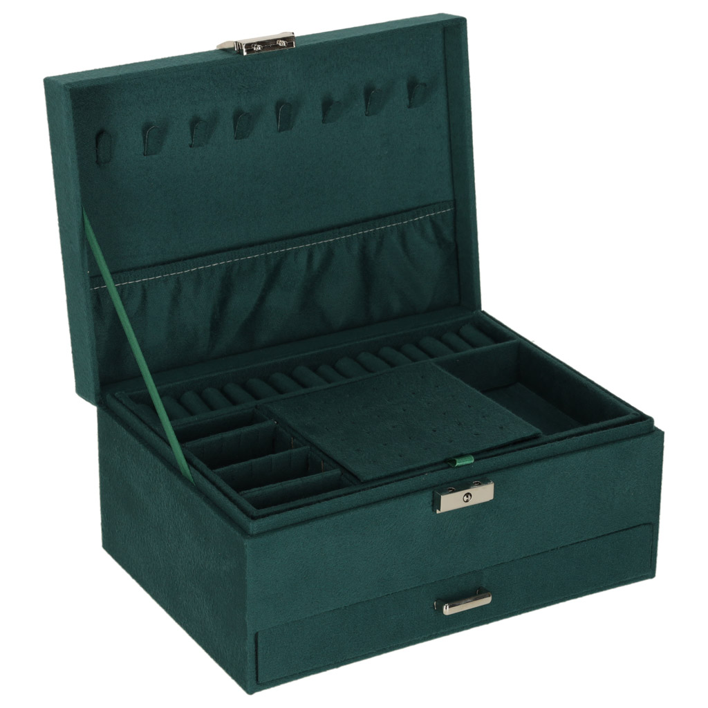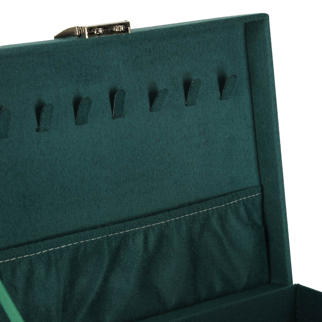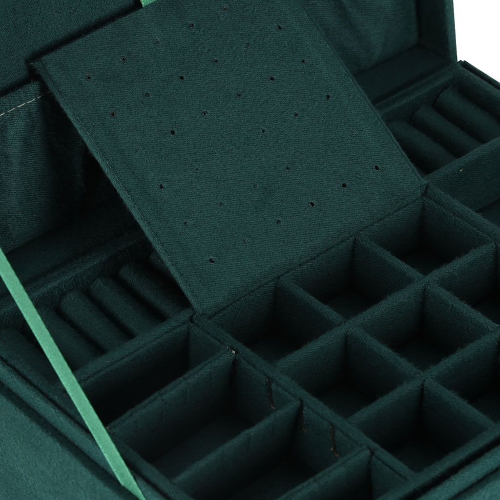 Mahukas ja läbimõeldud ehtekarp aitab hoida kõik ehted korrektselt organiseerituna ning kaitstuna. Elegantne roheline toon sobib nii klassikalisse kui ka modernsesse interjööri ning muudab karbi kauniks kingituseks igaks tähtpäevaks.