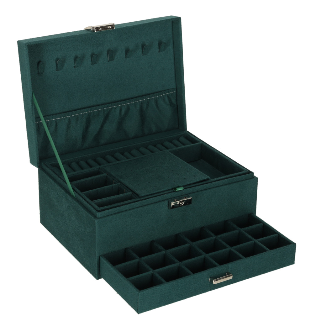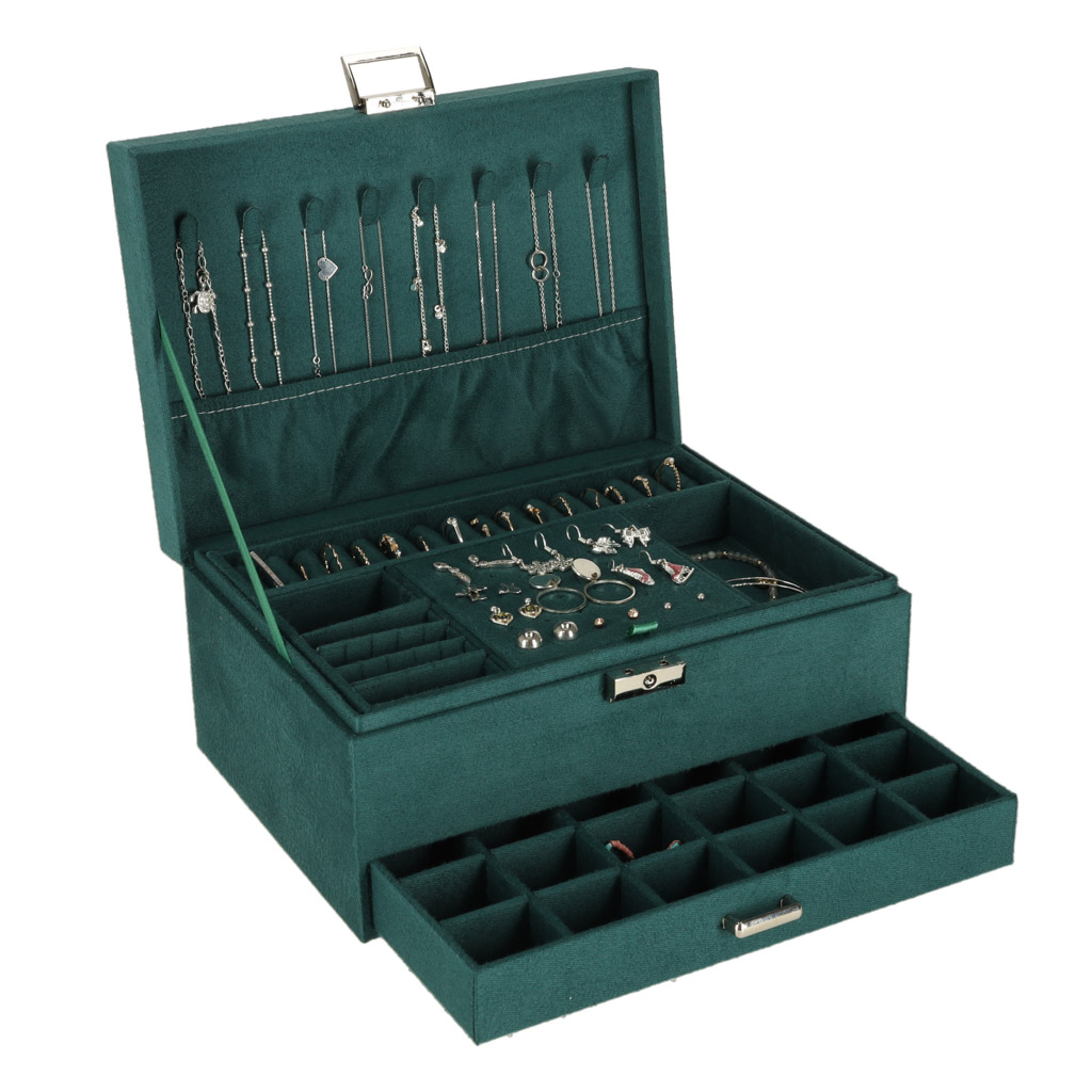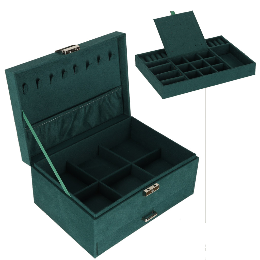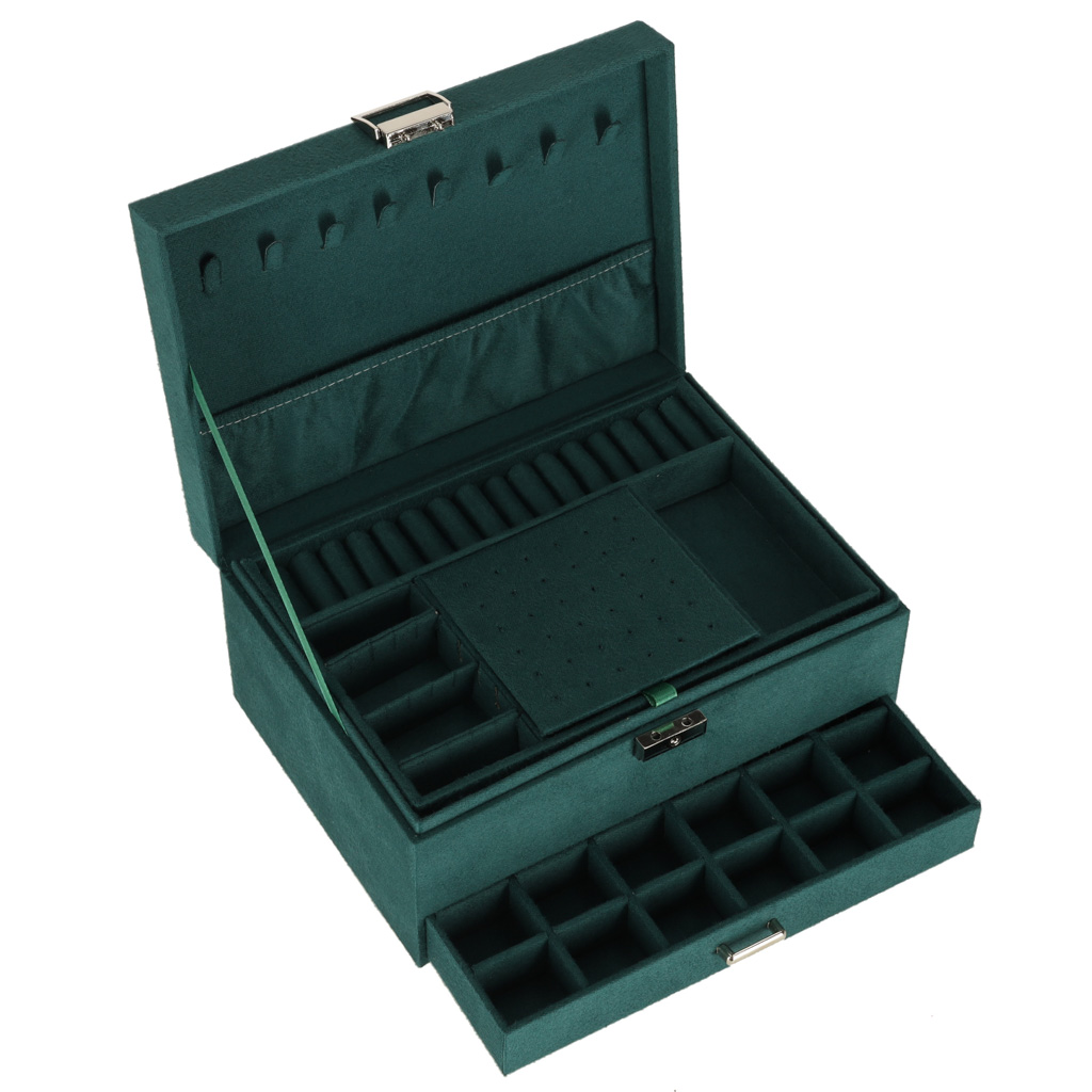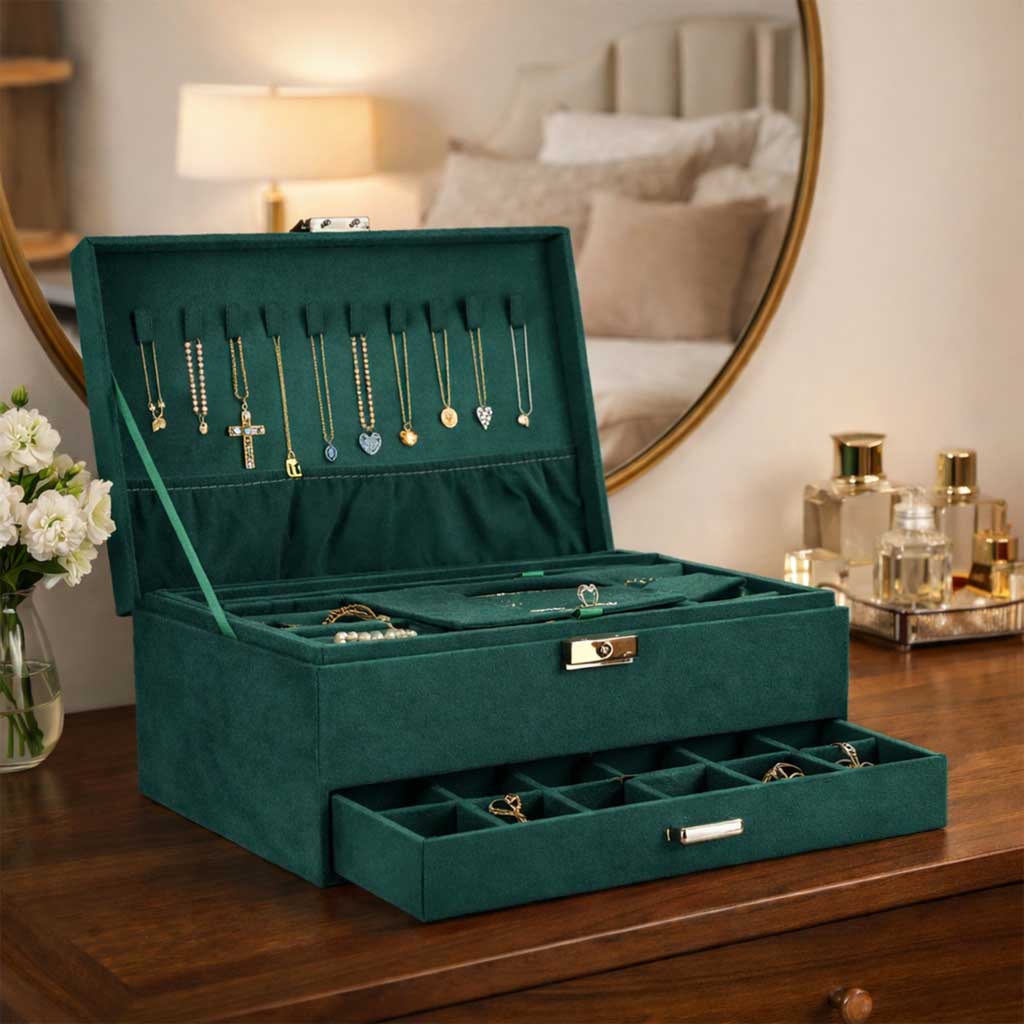 Mahukas ja läbimõeldud ehtekarp aitab hoida kõik ehted korrektselt organiseerituna ning kaitstuna. Elegantne roheline toon sobib nii klassikalisse kui ka modernsesse interjööri ning muudab karbi kauniks kingituseks igaks tähtpäevaks.