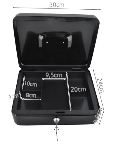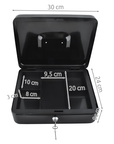 Praktiline ja vastupidav metallist rahakassett sobib ideaalselt sularaha, isiklike dokumentide, väärtpaberite ning muude väikeste väärtuslike esemete turvaliseks hoiustamiseks nii kodus kui ka kontoris.