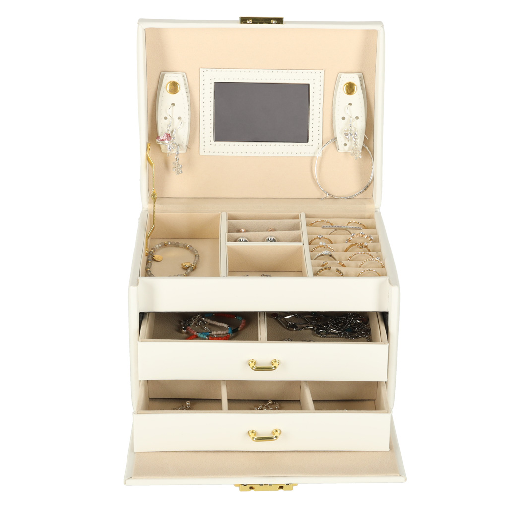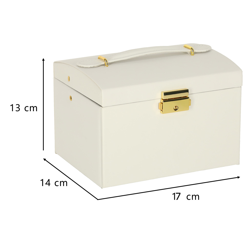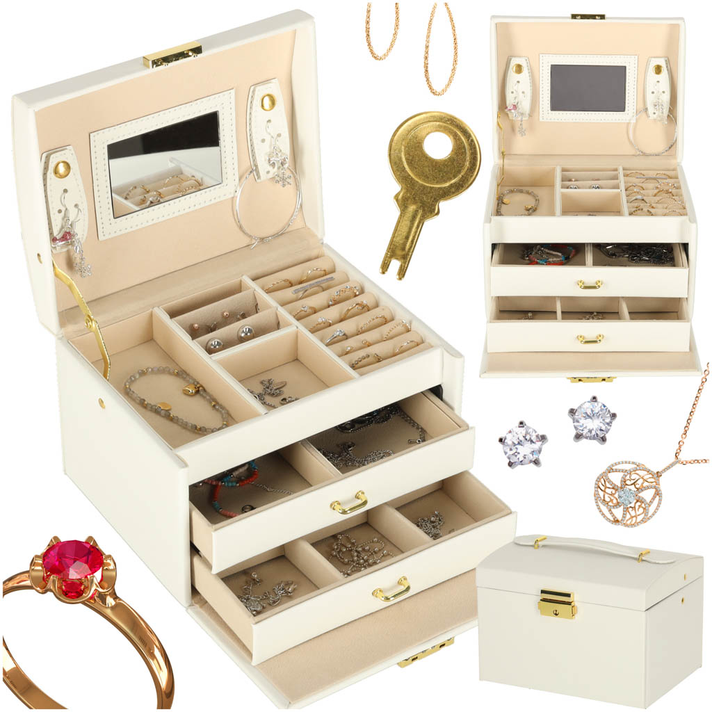 * Hästi läbimõeldud paigutusega karbil on erinevad lahtrid (14tk) ehete organiseerimiseks, mugav hoidik sõrmuste jaoks, spetsiaalsed kohad väikeste kõrvarõngaste jaoks ning võimalus suuremiad kõrvarõngaid riputada. Osade lahtrite vaheseinu saab ise reguleerida, et need sobiksid täpselt sinu ehetele.