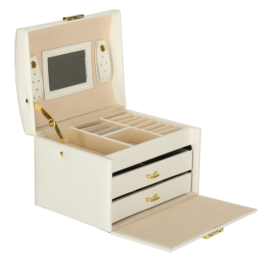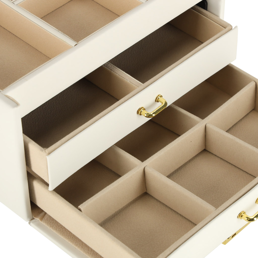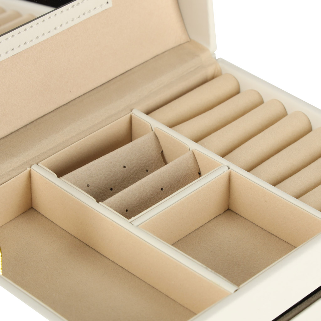 * Hästi läbimõeldud paigutusega karbil on erinevad lahtrid (14tk) ehete organiseerimiseks, mugav hoidik sõrmuste jaoks, spetsiaalsed kohad väikeste kõrvarõngaste jaoks ning võimalus suuremiad kõrvarõngaid riputada. Osade lahtrite vaheseinu saab ise reguleerida, et need sobiksid täpselt sinu ehetele.