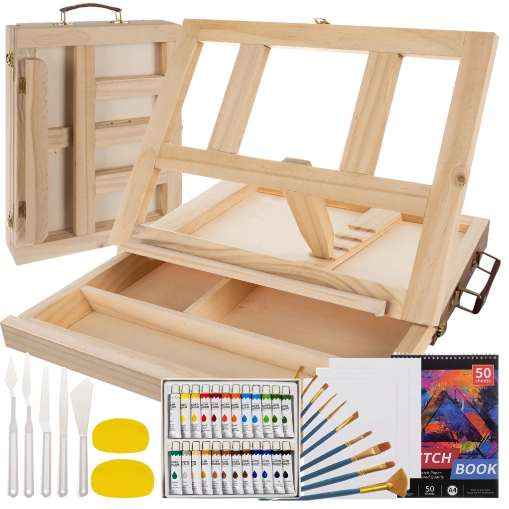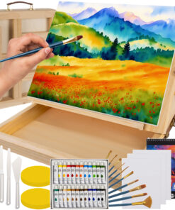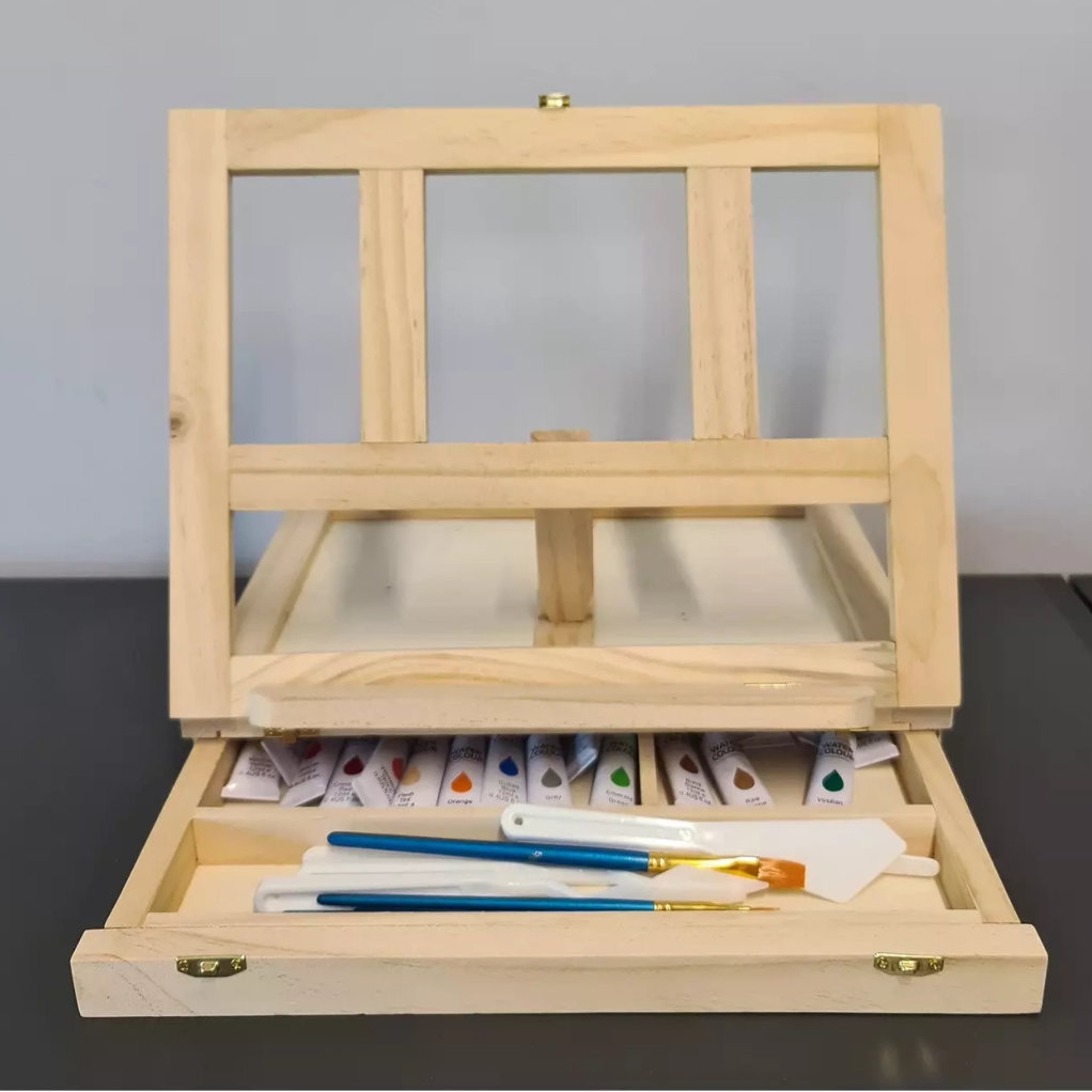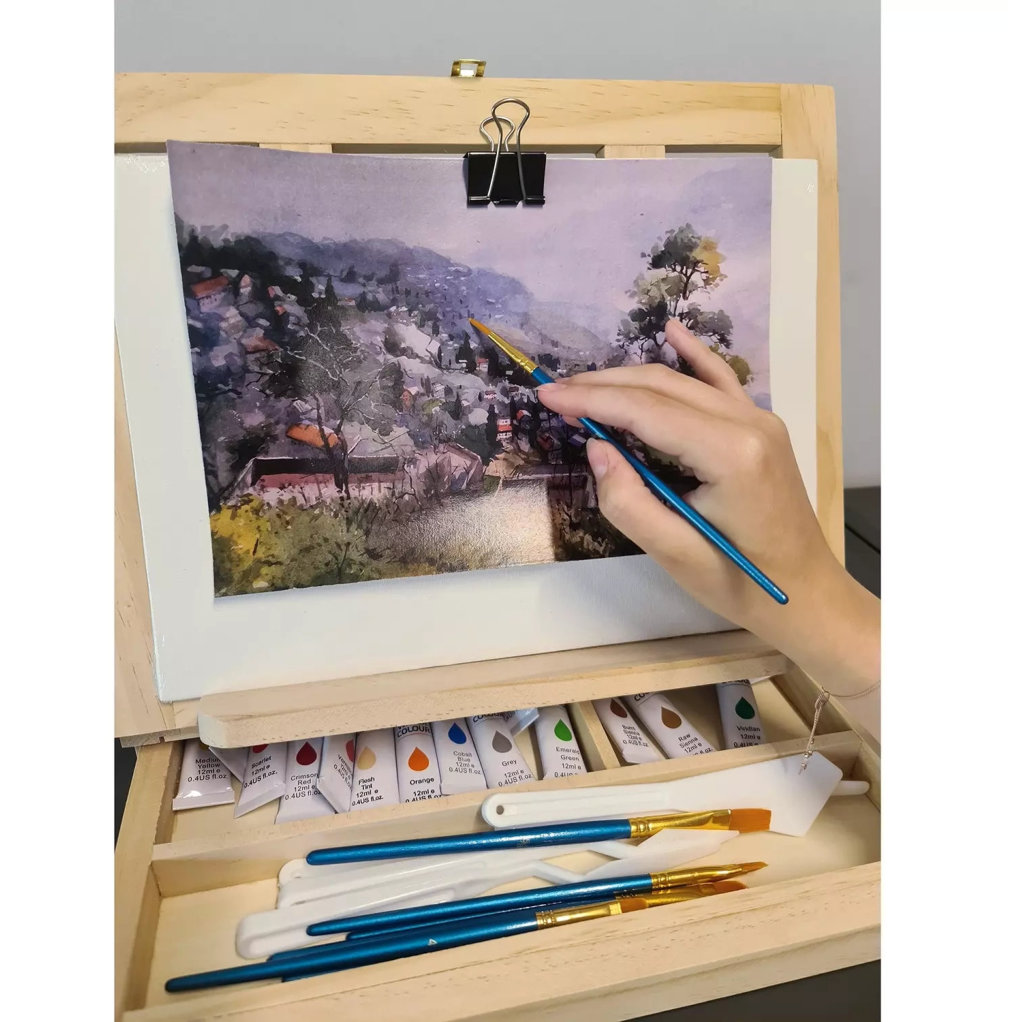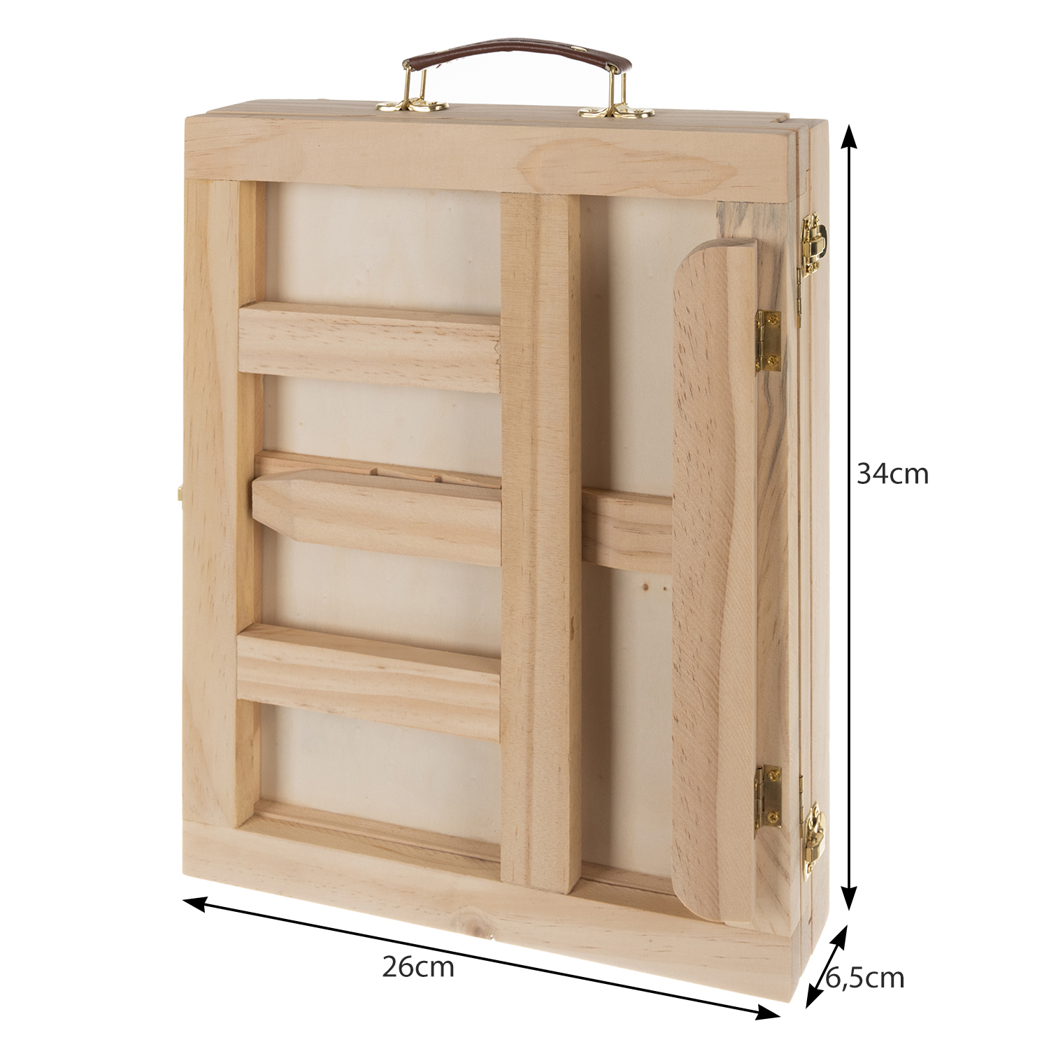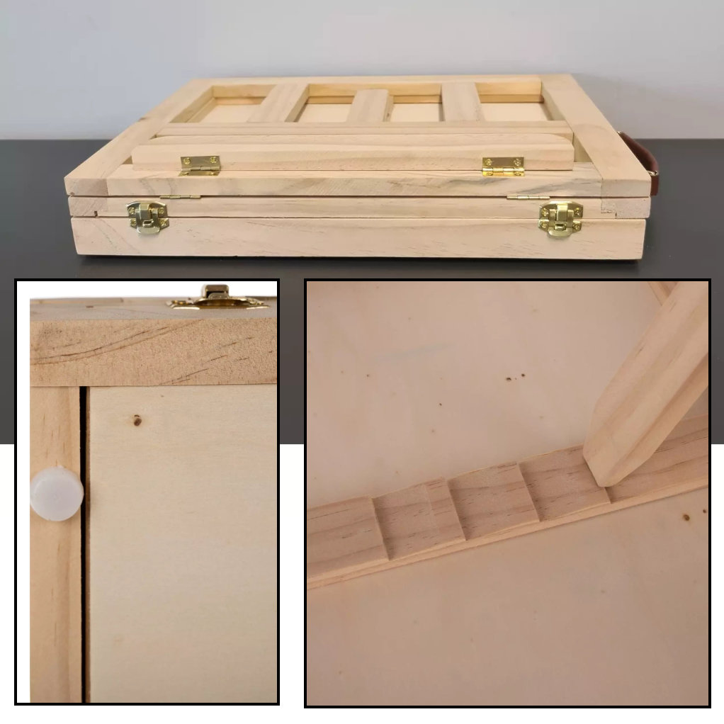 * Komplekti põhiosa on praktiline, nutikas ja kompaktne 2in1 kohver, mida saab muuta ka lauapealseks molbertiks. Maalimisaluse kallet saab reguleerida vastavalt enda soovile. Lisaks on kohvril sahtel tarvikute jaoks, kuhu mahuvad kõik värvid, pintslid jms.