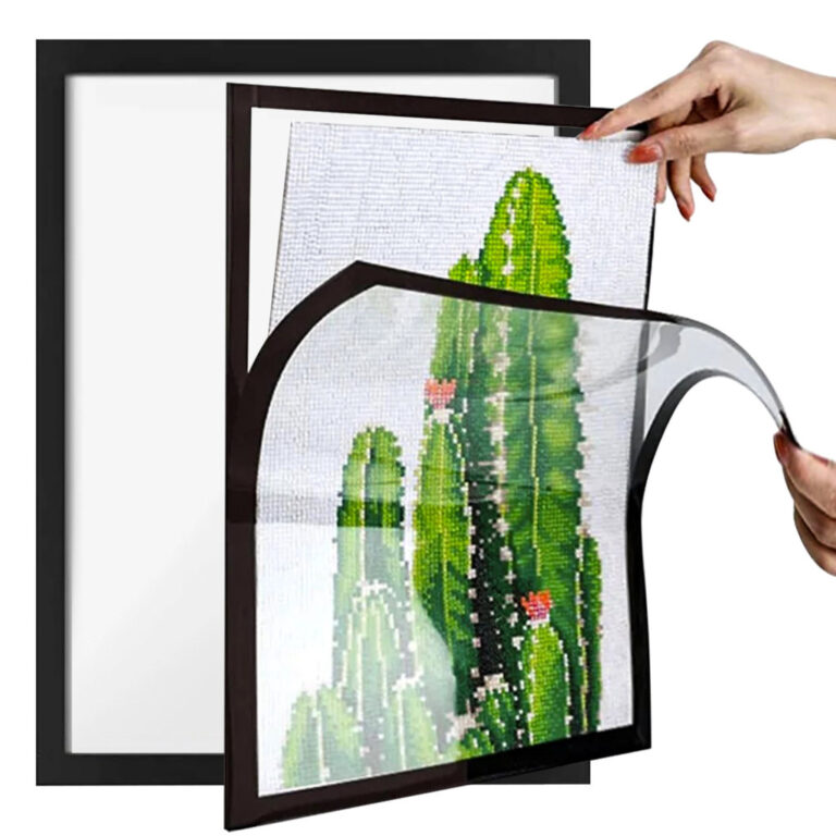 * Raami aluskiht on isekleepuv – selle saab seina või muu pinna külgi kinni kleepida, pealmine kiht on läbipaistva kilega ning kinnitub aluse külge magnetiga