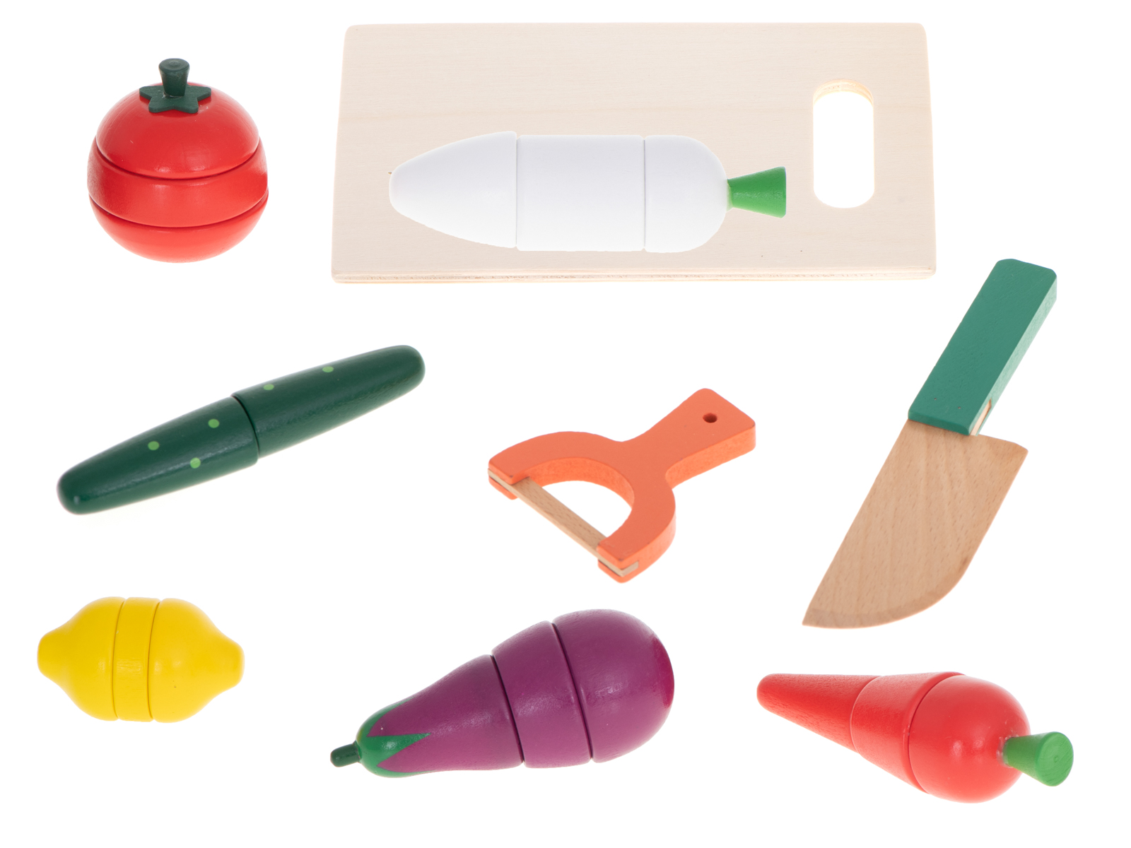 - Lõputu mängurõõm: Värvilised köögiviljad, mida saab lõigata ja uuesti kokku panna, pakuvad lastele tundideks põnevat tegevust.