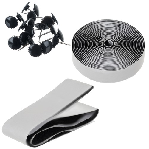 * Väga lihtne paigaldada ja eemaldad – komplektis kaasas teibiga takjakinnitused (ülaservas lai 4cm takjariba, külgedel kogu ulatuses 2,5cm riba), lisaks kaasas ka kinnitus-knopkad (nt puituksele kinnitamiseks)