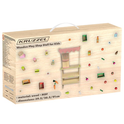 * Poelett ja kaubad on valmistatud puidust – tugeva ja vastupidava konstruktsiooniga, ilusad ja lastele ohutud. Kõik servad on hoolikalt töödeldud ning kasutatud vaid ohutuid mittetoksilisi värve.