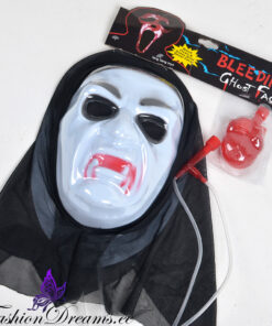 * Kaasas südamekujuline plastikust anum, mis on juba kunstverega täidetud ning mille saab ühendata voolikutega – mida rohkem seda pumbata seda rohkem verd maski sisse pritsib. Vajadusel võib kunstvere asendada ka mingi muu vedelikuga (toiduvärvi ja/või helendava pulbriga segatud vesi vms)