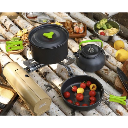 * 18-osaline komplekt, kus on olemas kõik vajalik välitingimustes toidu valmistamiseks