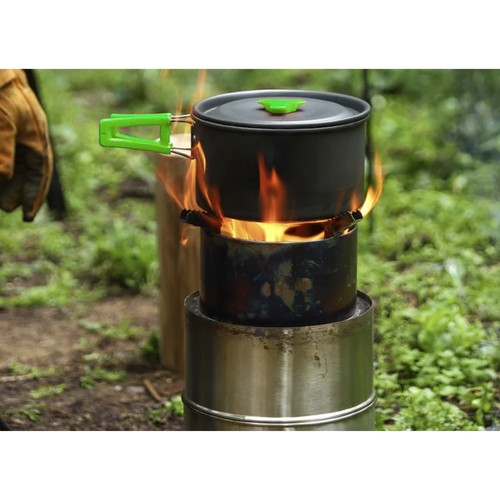 * Komplektis pott (1750ml), pann (850ml), kaas (sobib nii potile kui pannile), teekann (850ml) + kaas, 2 tassi (100ml), 2 nuga, 2 kahvlit, 2 lusikat, 2 hoiukotti söögiriistadele, transpordikott, 2 karabiini.