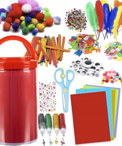 * Pakis pehmed pompom pallid (mitmes erinevas suuruses, eri värvi, mõned sädelevate lintidega), värvilised linnusuled, glitter liimid, karvased värvilised traadid, erinevad nööbid, erinevas suuruses liikuvad silmad, pisikesed läikivad kujundid (südamed, lehed, näod jpm), palju vahtplastist kleepsusid (kirjatähed ja erinevad kujundid- lilled, liblikad jms), kleepuvad erivärvi kristallid (ümmargused, tähekesed), värvilised jäätisepulgad (50tk), tugevad värvilised paberid, turvasüsteemiga käärid