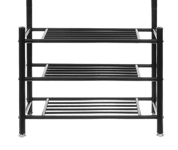 - Kõik esiku jaoks ühes lahenduses – ülemine toru riidepuudele, 18 konksu ning 3 jalanõuderiiulit aitavad hoida korra ka väiksemas ruumis.