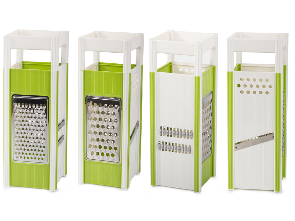 - Viis erinevat tera võimaldavad riivida ja lõigata erinevas suuruses köögivilju ja puuvilju.
