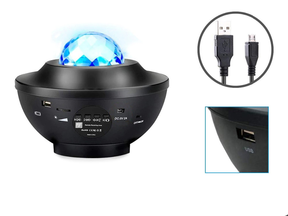 Projektor on varustatud libisemiskindlate jalgadega, et tagada stabiilsus. Komplekt sisaldab USB kaablit seadme toiteks ning kaugjuhtimispulti. Projektor on lihtsasti kasutatav ja sobib suurepäraselt igasse interjööri.