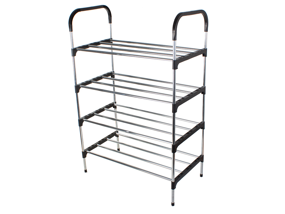Mitmetasandiline jalanõude riiul on kerge ja stabiilne lahendus, mis sobib nii koju, kontorisse kui ka poodi. Sellele mahub kuni 12 paari jalanõusid.