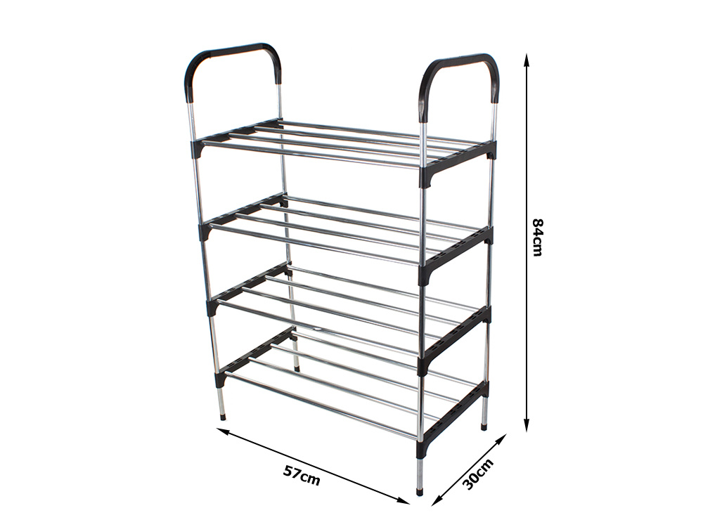 Riiuli mõõdud on järgmised: kõrgus 84 cm, laius 57 cm ja sügavus 30 cm. Komplekt sisaldab nelja riiuliga jalanõude riiulit ja originaalpakendit.