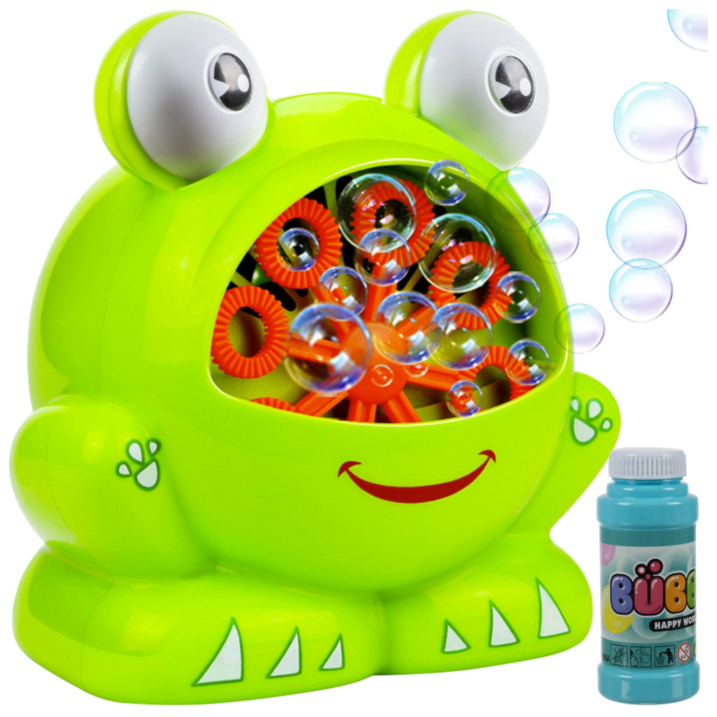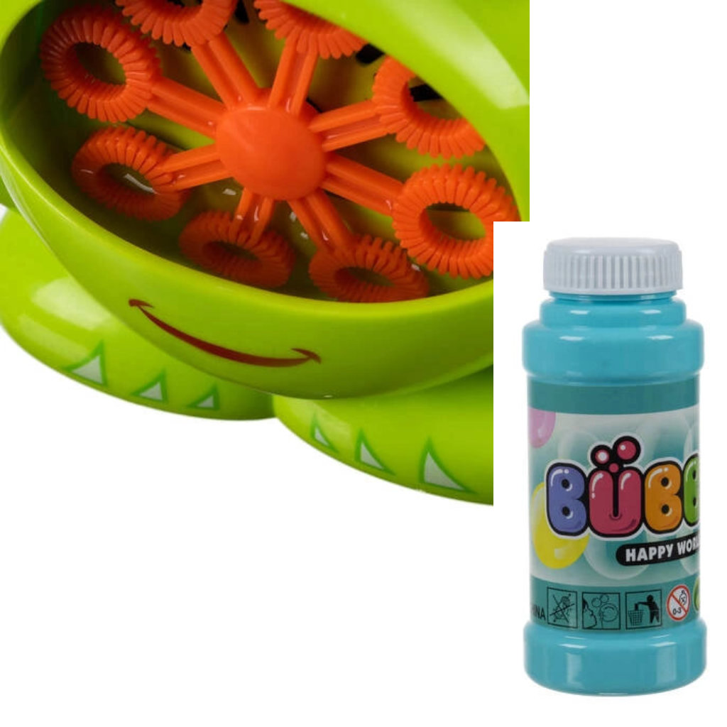 * Lihtsa ja hästitoimiva süsteemiga – mullivedelik kallatakse konna suus olevale alusele ning 8 rõngaga mullitaja hakkab ringi käima ja väike puhur puhub sealt järjest suure hulga mulle