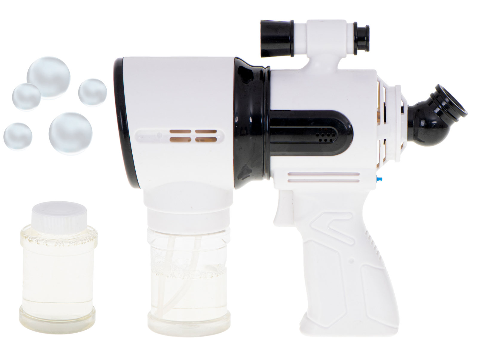 - Lõbus mullide generaator – kosmosepüstoli kujuline mullitajaja teeb seebimullide puhumise eriti lihtsaks ja kaasahaaravaks, pakkudes lapsele pikaks ajaks tegevust nii õues kui toas.