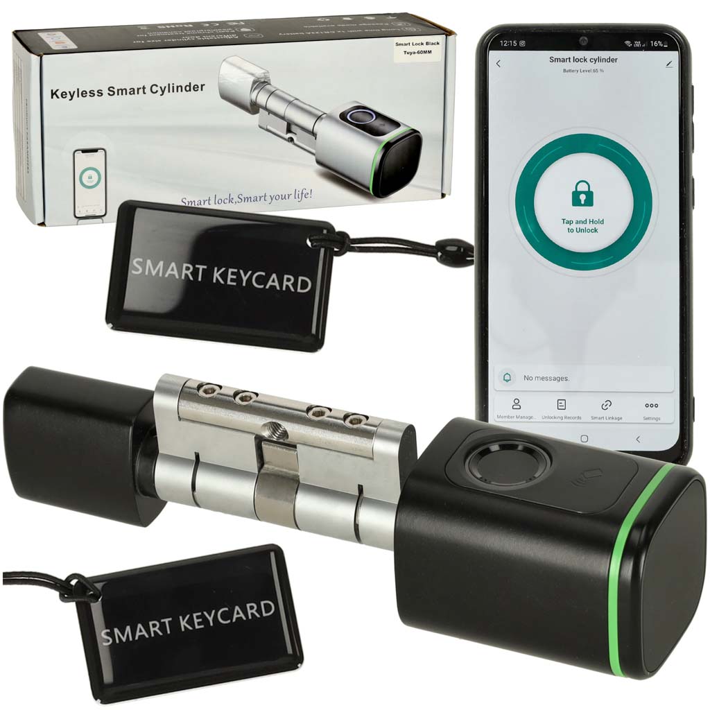 Juhtimine TuyaSmart rakendusega – rakendus võimaldab lukku seadistada ja hallata nutiseadme kaudu. Selle abil saab ust avada, muuta seadeid ning lisada uusi sõrmejälgi