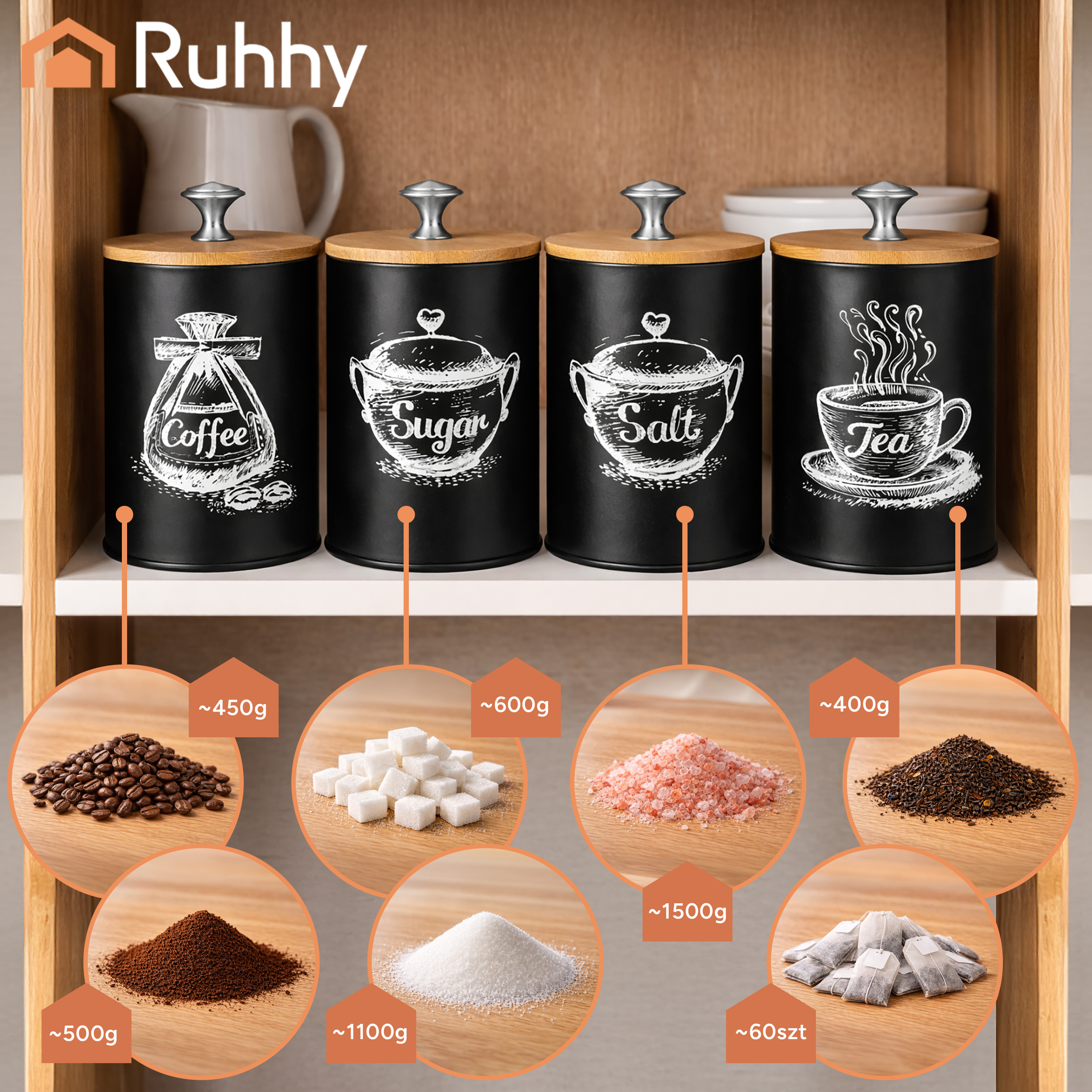Praktiline ja stiilne 4-osaline säilituspurkide komplekt, mis aitab hoida köögi korras ning kuivained värskena. Suur maht, õhukindel sulgumine ja modernne välimus teevad sellest igapäevase lemmiku.