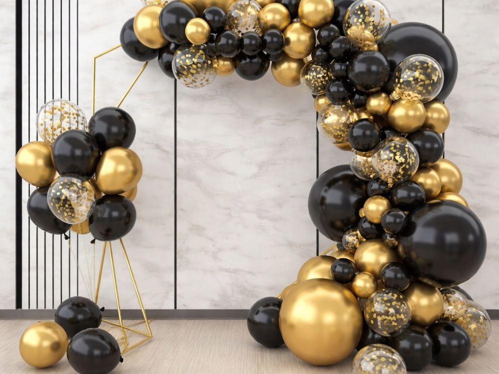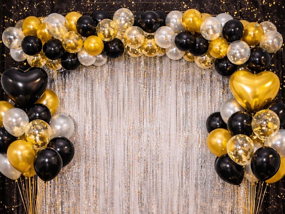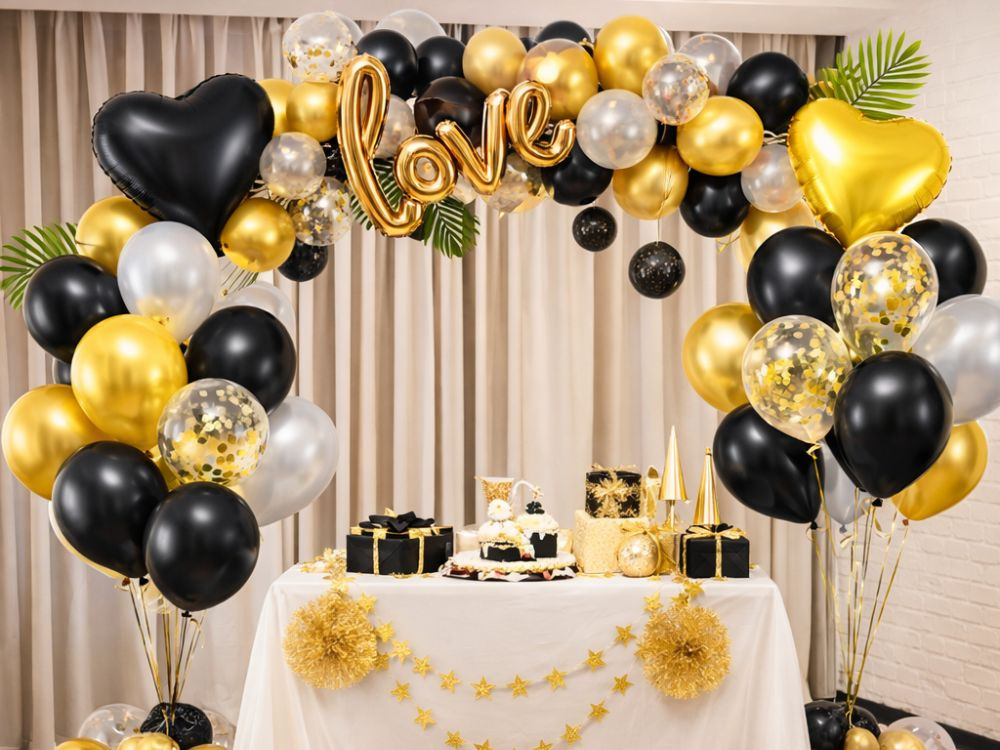 Elegantne õhupallikomplekt sobib hästi sünnipäevade, tähtpäevade ja muude pidulike sündmuste kaunistamiseks. Musta, kuldse, hõbedase ja läbipaistva õhupalli kooslus loob efektse ja piduliku üldmulje, mis sobib nii kodusele peole kui ka peosaali dekoreerimiseks. Komplektis olevad südamekujulised õhupallid ja kuldse konfettiga läbipaistvad õhupallid annavad dekoratsioonile erilisema ja silmapaistvama ilme.