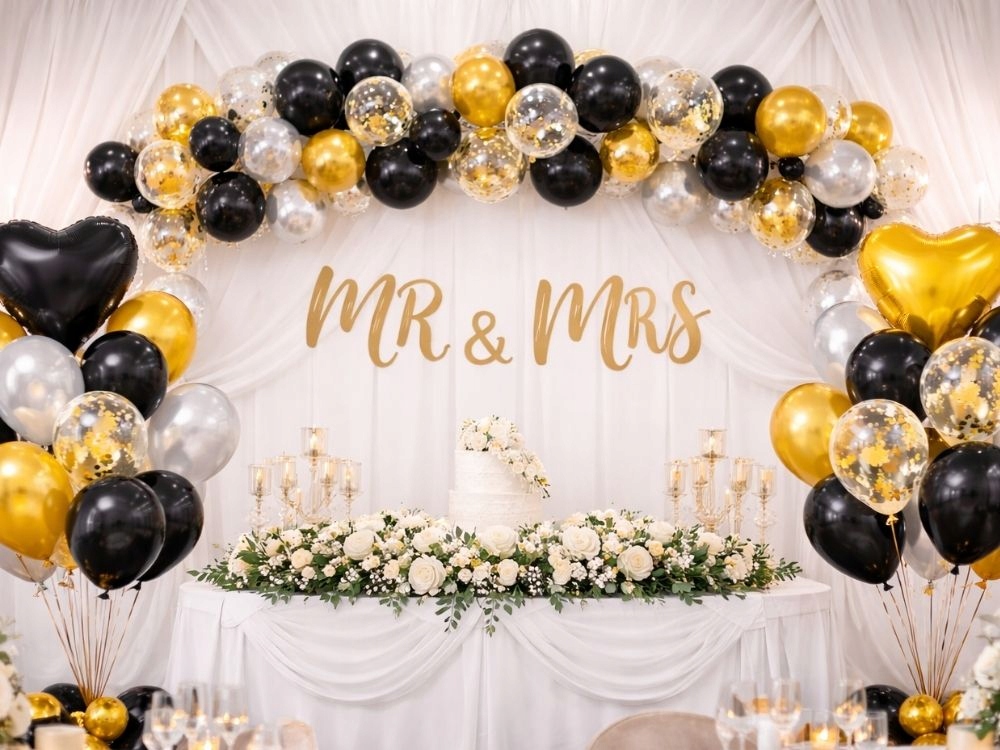 - Pidulik ja elegantne värvikombinatsioon – must, kuldne ja hõbedane toon loovad stiilse koosluse, mis sobib hästi erinevate peokujundustega. Selline värvivalik jätab korrastatud ja piduliku mulje ning toimib hästi nii päevasel kui ka õhtusel üritusel.