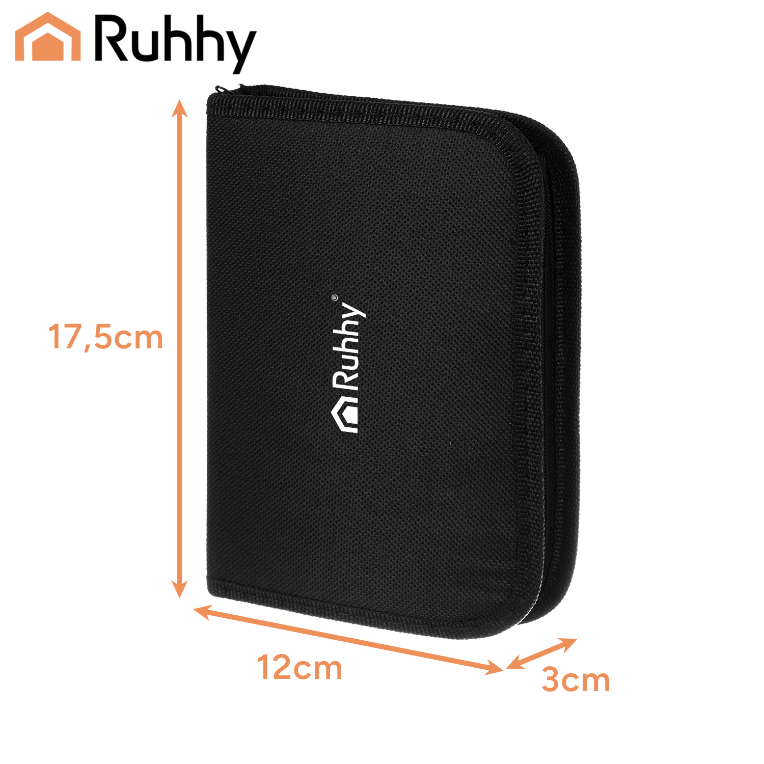 * Esemed on pakendatud mugavasse ja kompaktsesse lukuga ümbrisesse. Niidirullid ja tarvikud saab panna kummiga pesadesse ning need püsivad ilusti paigal ning on alati lihtsasti leitavad. Hea ka kaasa võtta