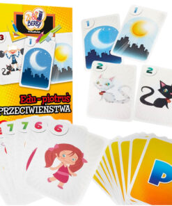 * Komplektis 12 paari vastandsõnu tähistavate piltidega (täis-tühi, päev-öö, tugev-nõrk, kõrge-madal, noor-vana, magus-soolane jne)