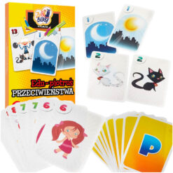 * Komplektis 12 paari vastandsõnu tähistavate piltidega (täis-tühi, päev-öö, tugev-nõrk, kõrge-madal, noor-vana, magus-soolane jne)