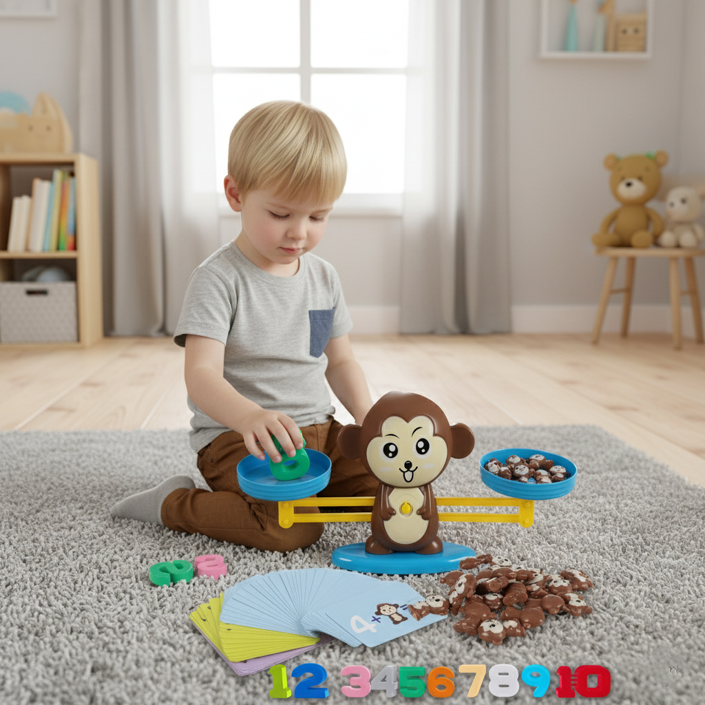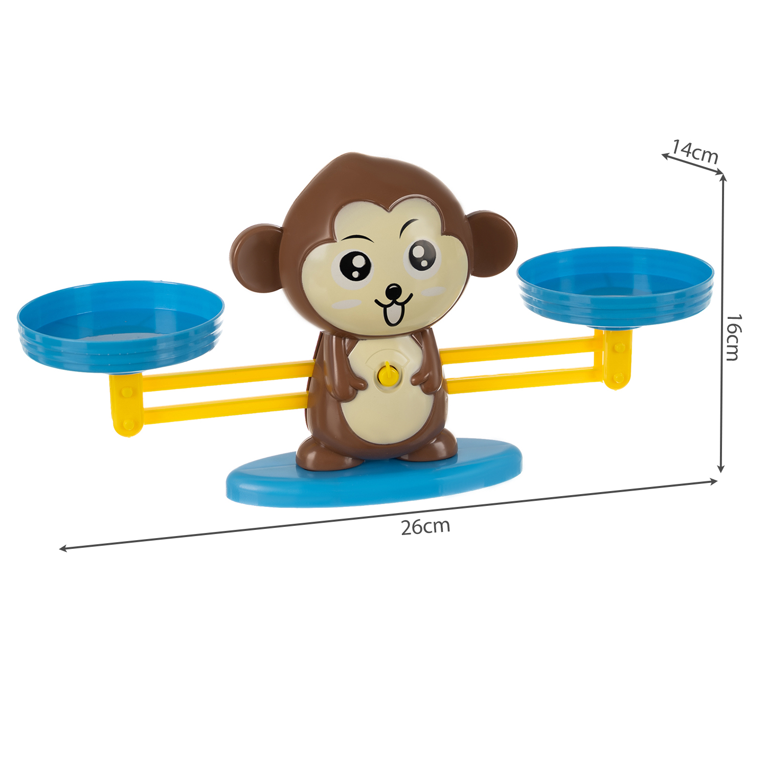 Lõbus ja arendav tasakaalukaal aitab lapsel mõista arve, liitmist, lahutamist ning tasakaalu põhimõtet mängulisel viisil. Värvilised ahvikujulised raskused ja numbrid muudavad matemaatika lihtsaks ja põnevaks nii kodus kui ka lasteaias.
