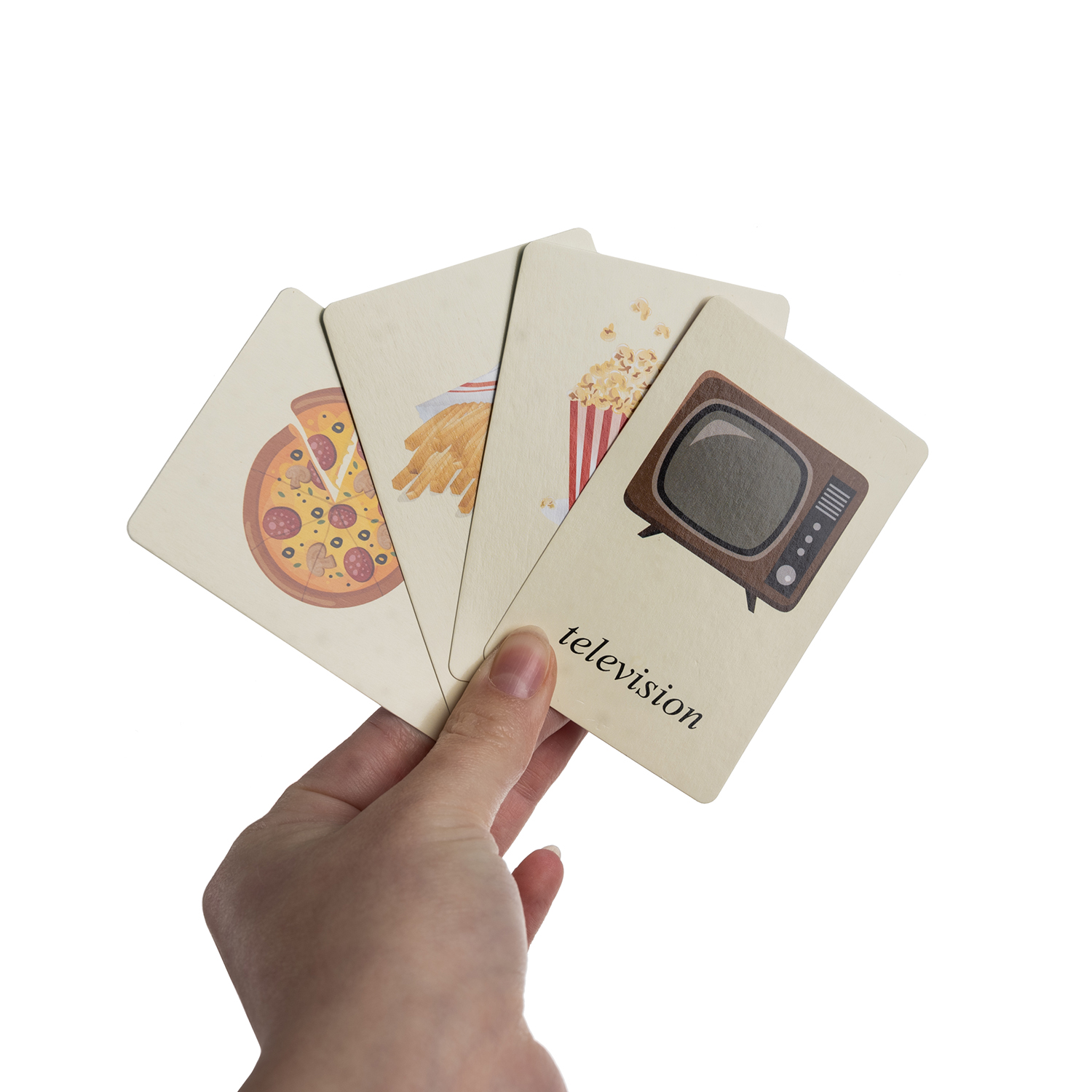 - Kaasas õppekaardid – komplektis on 30 erineva raskusastmega õppekaarti, millel toodud ülesandeid saab ahvikaalu abil lahendada ning ennast ka ise kontrollida (kui kaal läheb tasakaalu on vastus õige). Kaartide teisel poolel on erinevad pildid koos ingliskeelse sõnaga – loomad, sõidukid, toiduained, igapäevaesemed jm. Sobivad väikelastele sõnavara õppimiseks või veidi suurematele ingliskeele õppeks. Kaardid sobisid väga hästi ka lastega pildi-aliase mängimiseks (seletada teistele verbaalselt või liigutuste abil, mis on pildil, ilma sõna välja ütlemata)