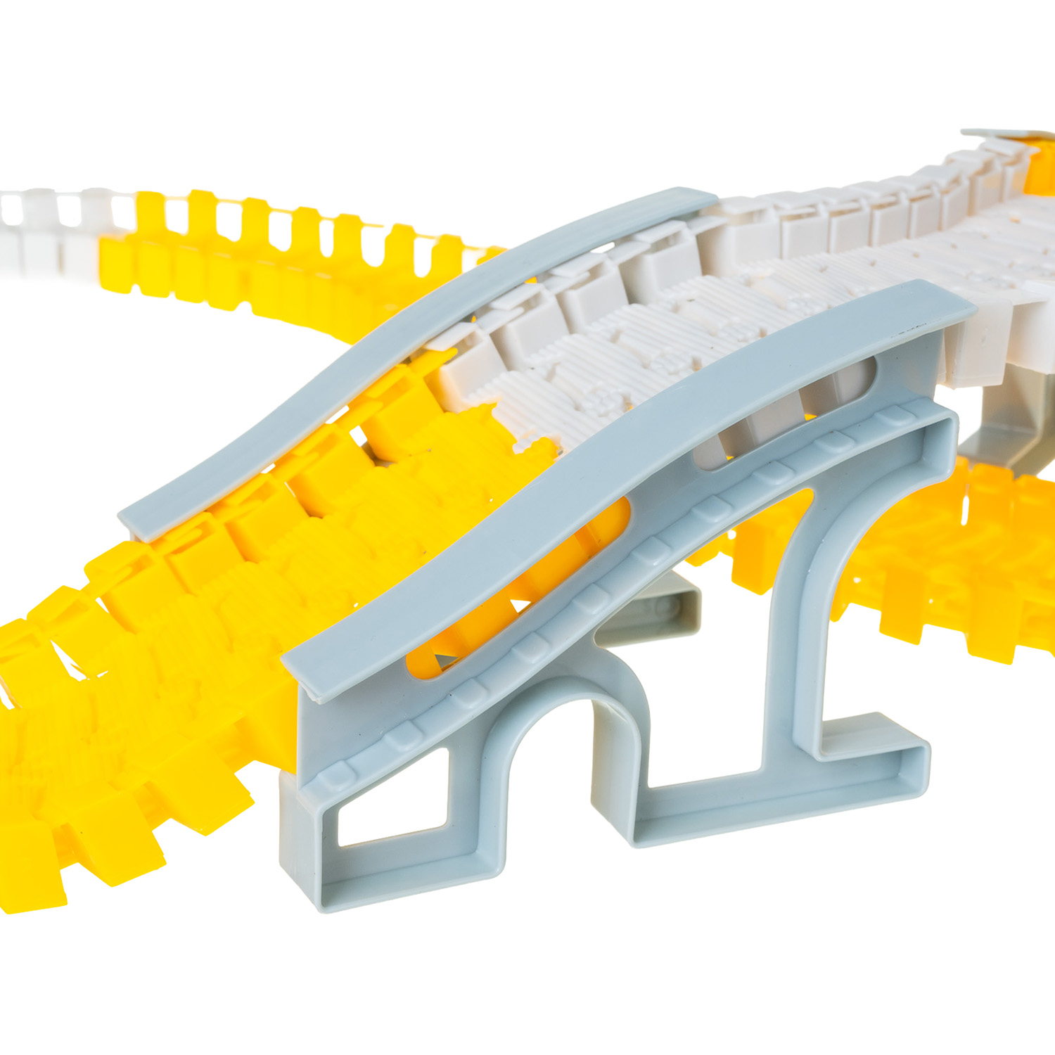 - Lapsed saavad ise ehitada autoraja ja ehitusplatsi, kujundades raja täpselt selliseks, nagu kujutlusvõime lubab. Rada on painduv, kokkupanemiseks on väga palju erinevaid võimalusi. Rajale saab lisada ka silla ja läbisõidu ning hoovaga reguleeritava ristmiku.