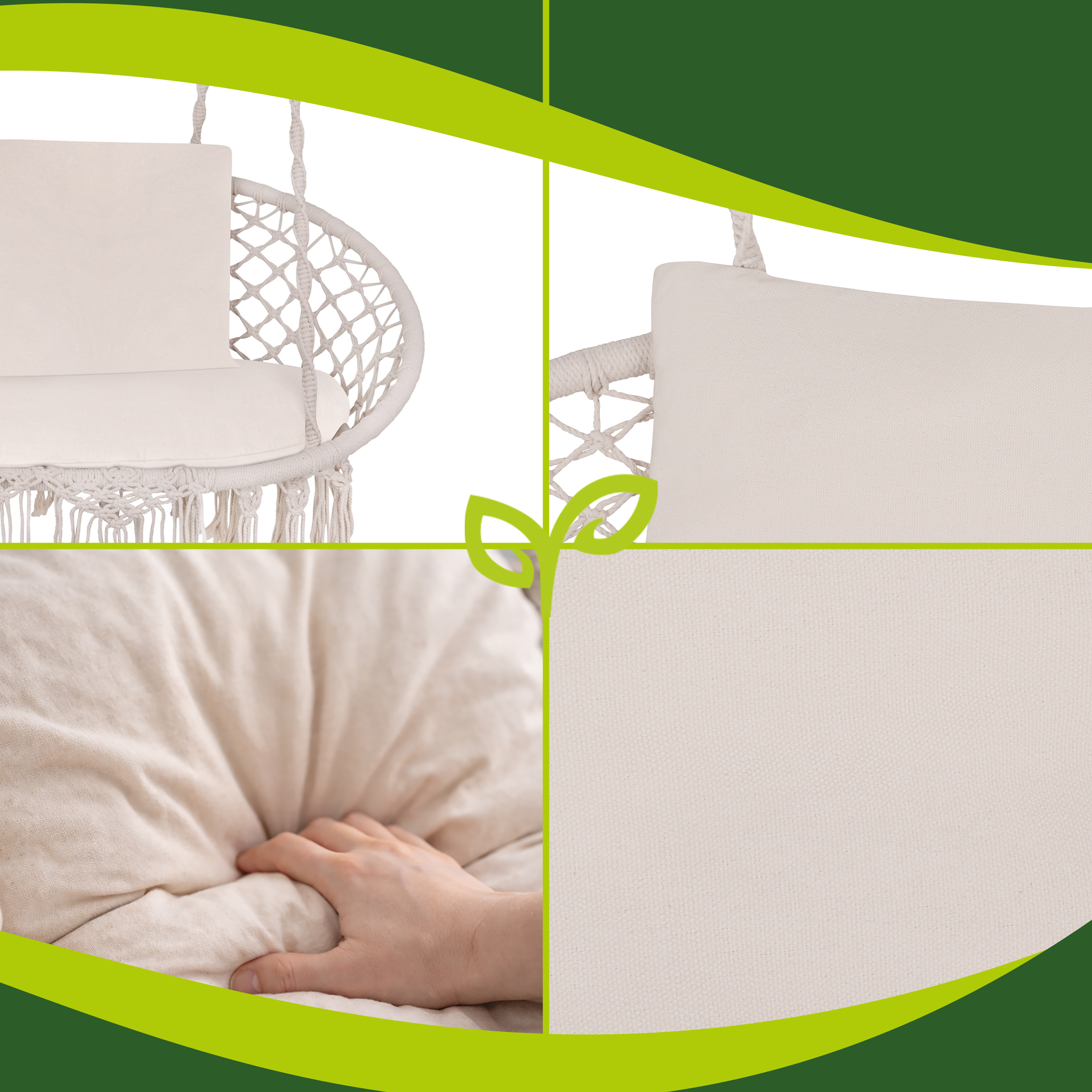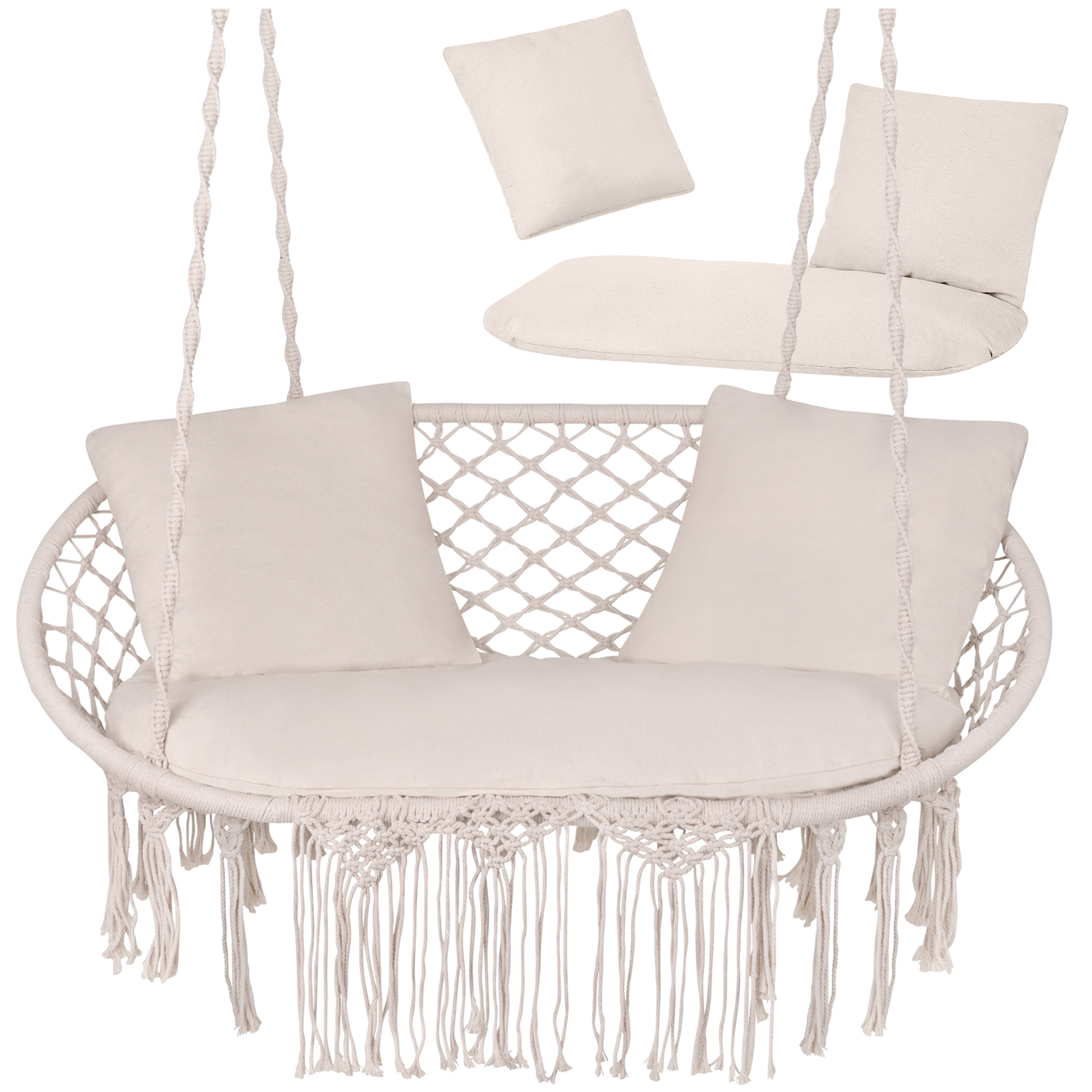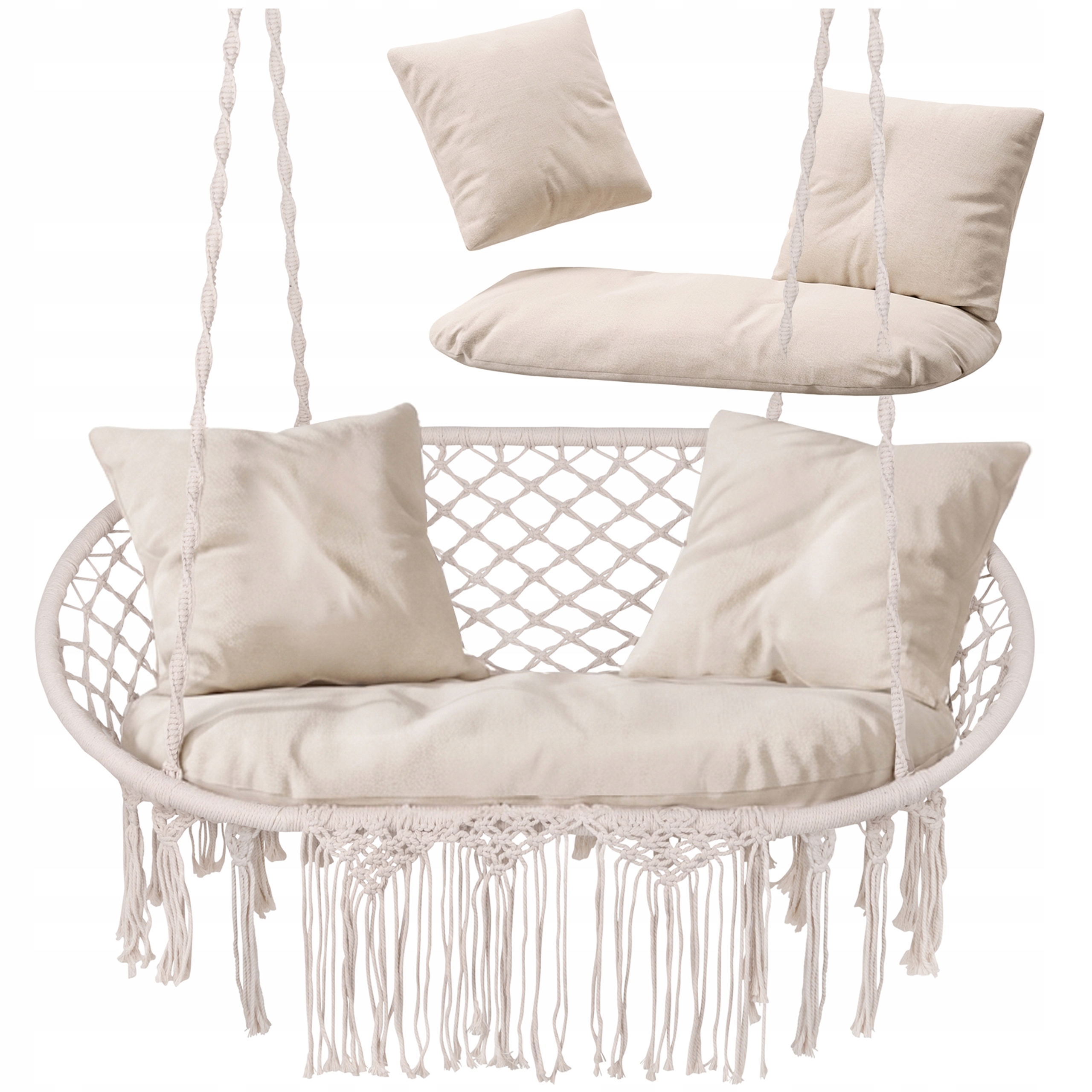 Sobib nii õue kui siseruumi – patju saab kasutada aias, rõdul, pergolas või isegi sisetingimustes rippkiige või dekoratiivse istumisalusena.