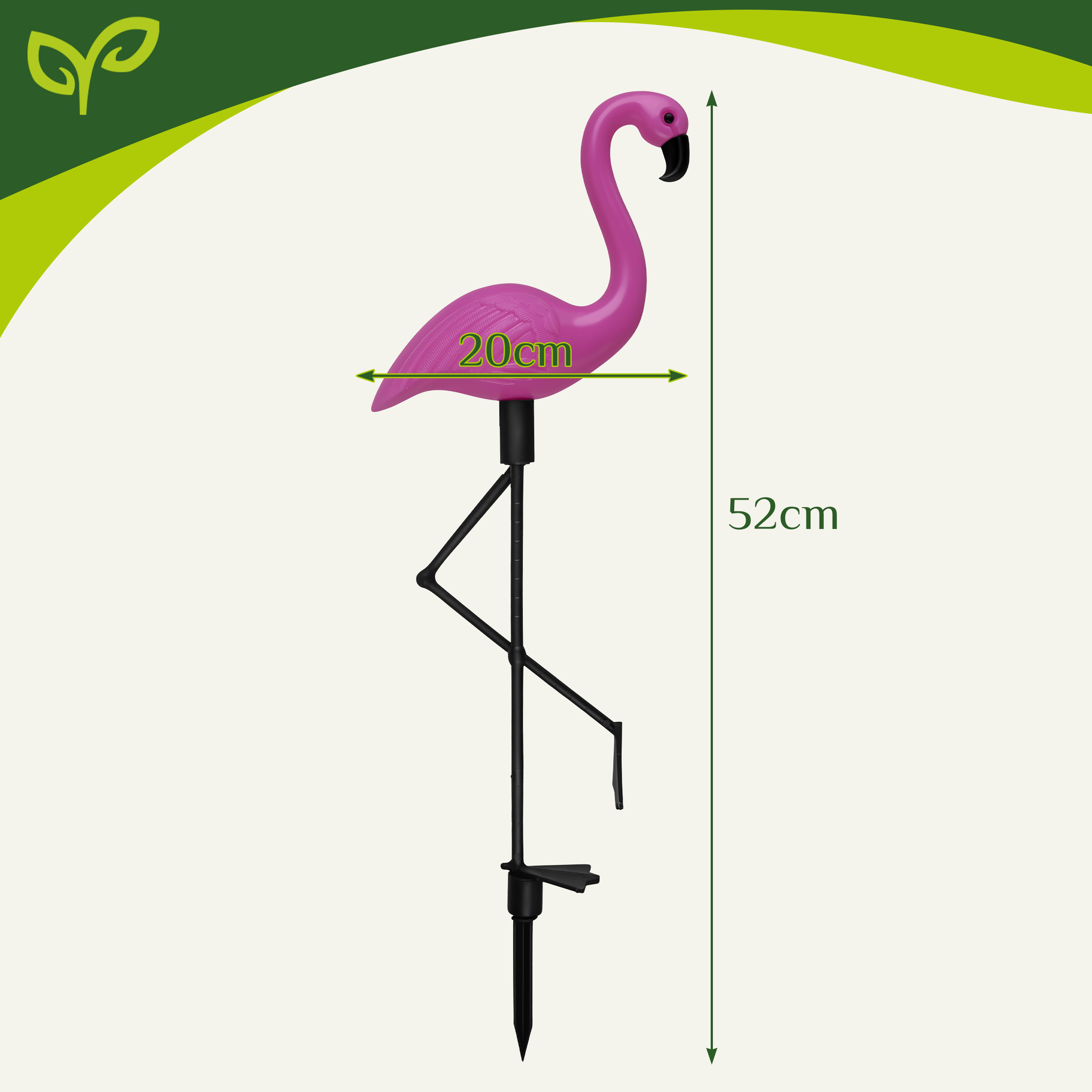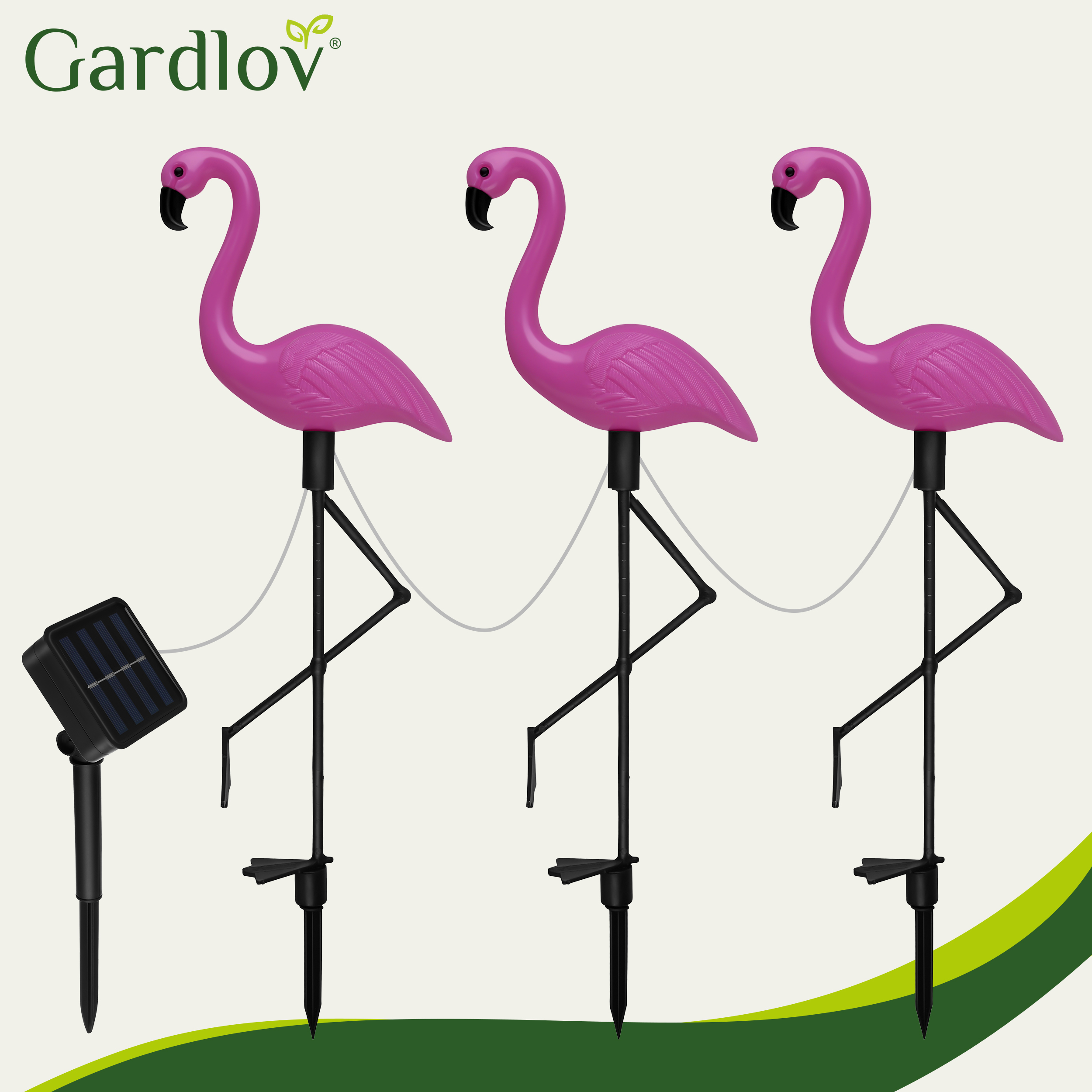 Too oma aeda mängulist sära nende päikesetoitel flamingokujuliste aiavalgustitega. Komplektis on 3 flamingot, mis loovad õhtuhämaruses hubase valguse ja rõhutavad peenra, raja või terrassi ilmet. Tänu päikesepaneelile töötavad lambid kaablite ja elektrikuluta ning lülituvad pimedas automaatselt sisse.