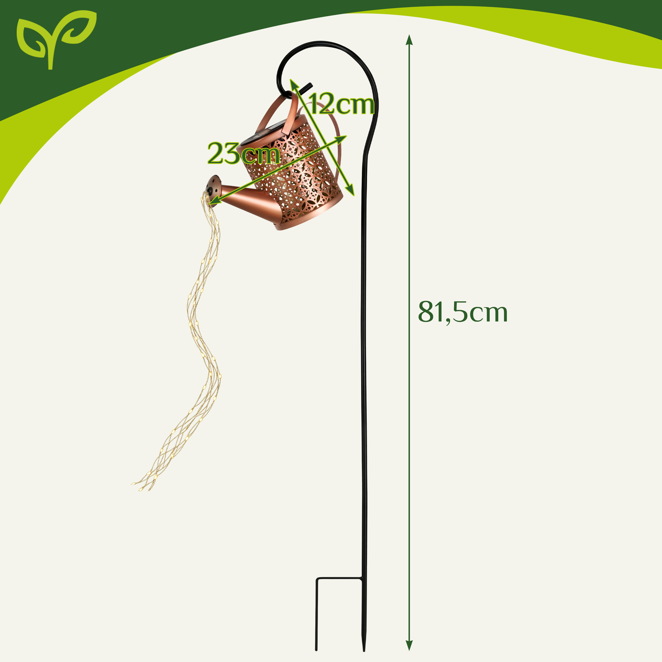 Too oma aeda muinasjutuline sära päikesetoitel kastekannu kujulise aiavalgustiga. Päeval kogub see energiat päikesest ja õhtuhämaruses süttib automaatselt, luues romantilise valgusmustri. Dekoratiivne “voolava vee” efekt muudab peenra, muruääre või pergola hetkega pilkupüüdvaks.