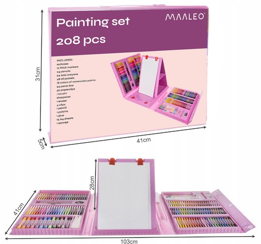 ?? the accessories will last for a long time – it's as many as 208 pieces – a giant painting set with crayons in a suitcase, paints, markers and pastels, enough for many weeks of intense fun and learning – and the suitcase will also accommodate new accessories when the old ones wear out