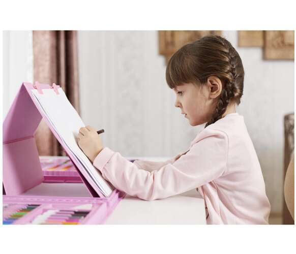 ??you can draw together – the pencils in the case include a double-sided A4 drawing stand , which allows two children to use the set at the same time – without arguing, waiting or pushing