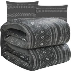 Pehme soe tekk koos padjapüüridega 160x200cm – hall talvemotiiv