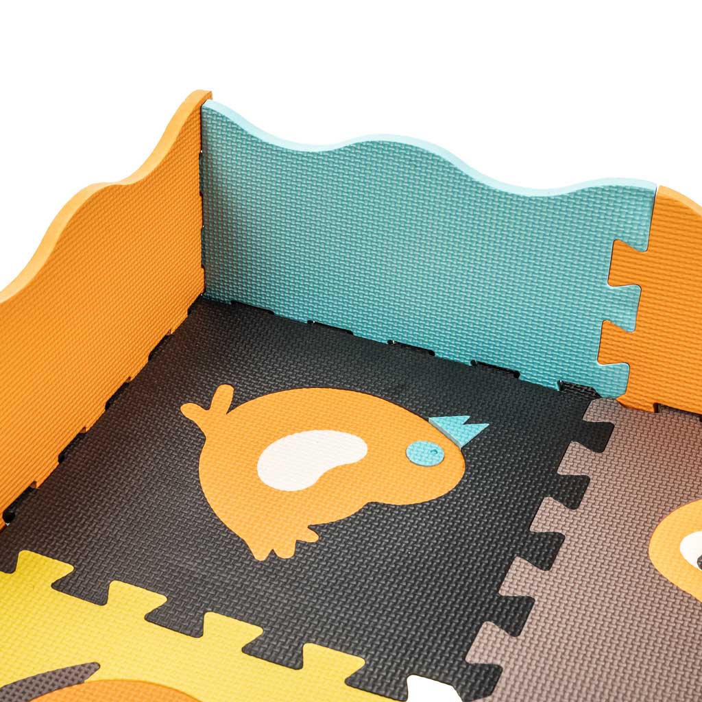 - 2-ühes lahendus: matt või mänguaedik – saad laduda puskletükkidest suure pehme mängumati või tõsta servad üles ja teha selge piiritletud mänguala.