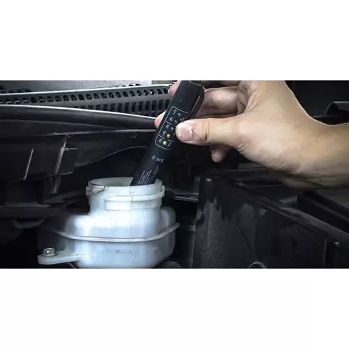 Kui näit viitab kõrgele niiskustasemele, vaheta pidurivedelik vastavalt sõiduki tootja soovitustele. Testimise ajal väldi vedeliku sattumist nahale ja silma ning kasuta võimalusel kindaid.