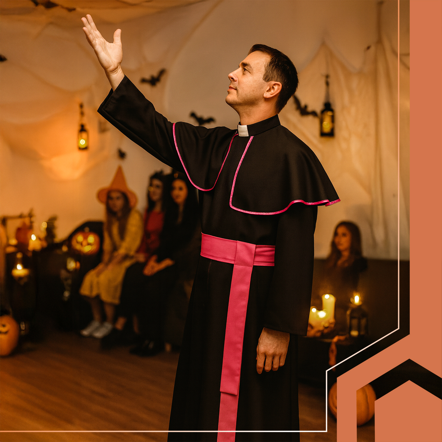 - Kostüümi detailid: Talar, kraega keep, liturgiline vöö.
