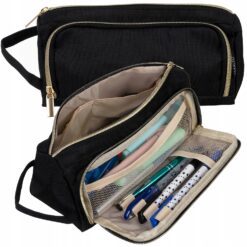 * Väga mugava, funktsionaalse ja palju kiidusõnu kogunud ülesehitusega pinal. Pinalil on 2 eraldi lukku. Pealmine lukk avab suurema sektsiooni, kuhu mahub suur hulk pliiatseid ning ka joonlaud, käärid jms. Lisaks on ka eraldi taskukesed väiksemate esemete jaoks. Esiküljel olev lukk avab väiksema lahtivolditava sektsiooni, kus on võrgust vahesein, mis võimaldab ligipääsu peasektsioonile ning kummiga kinnitused enimkasutatavate kirjutusvahendite jaoks.