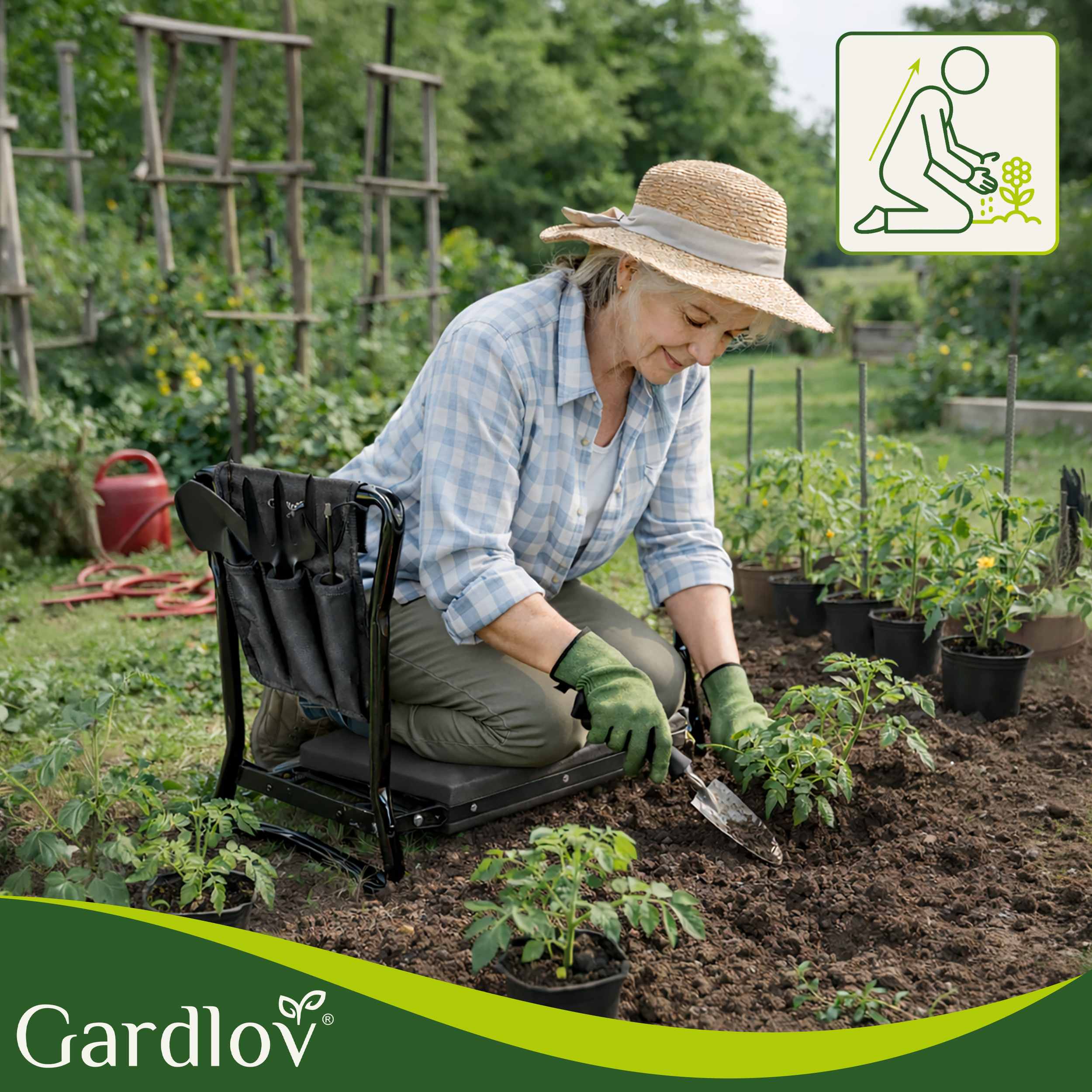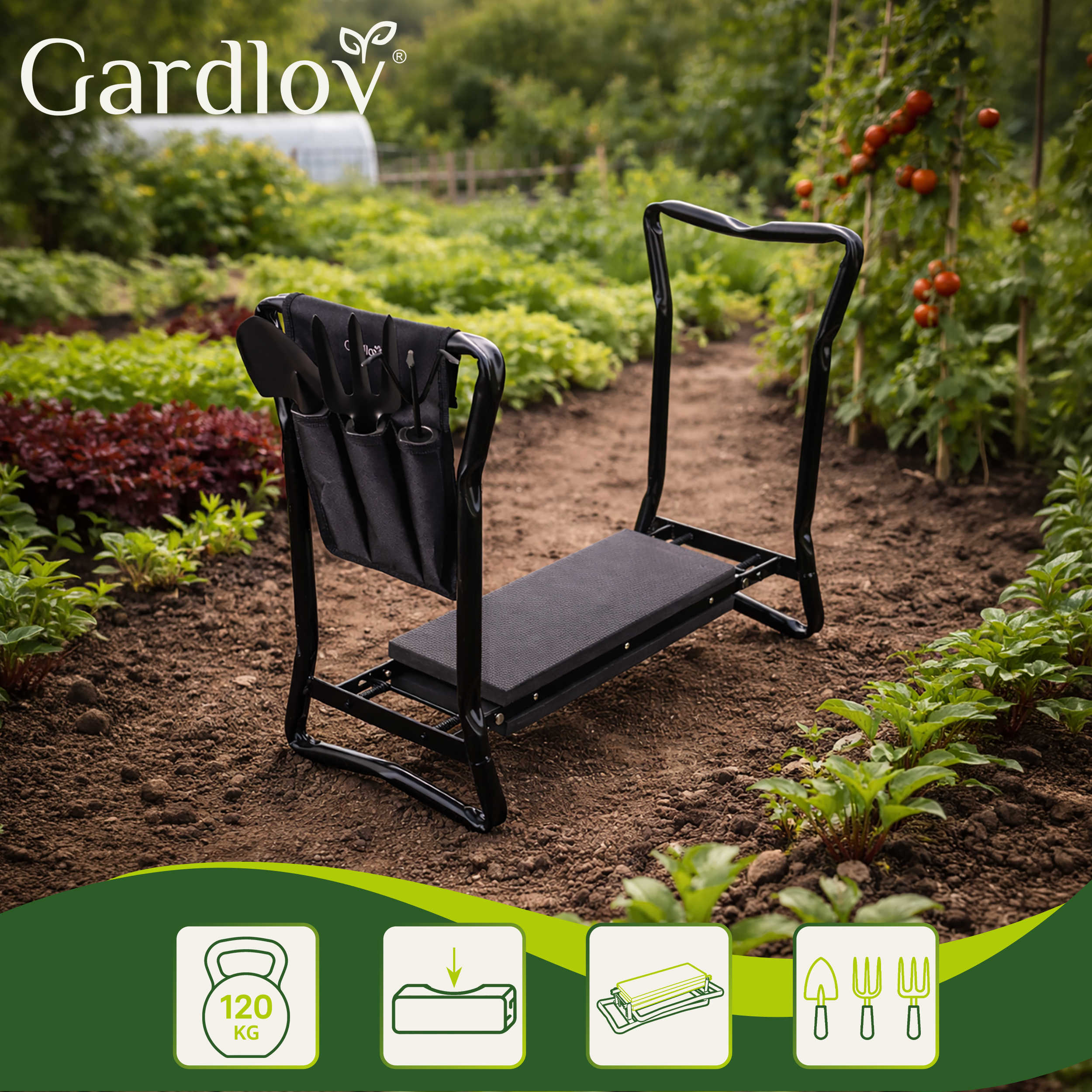 * Väga praktiline ja multifunktsionaalne pink, mida saab kasutada nii istumiseks kui põlvitamiseks.