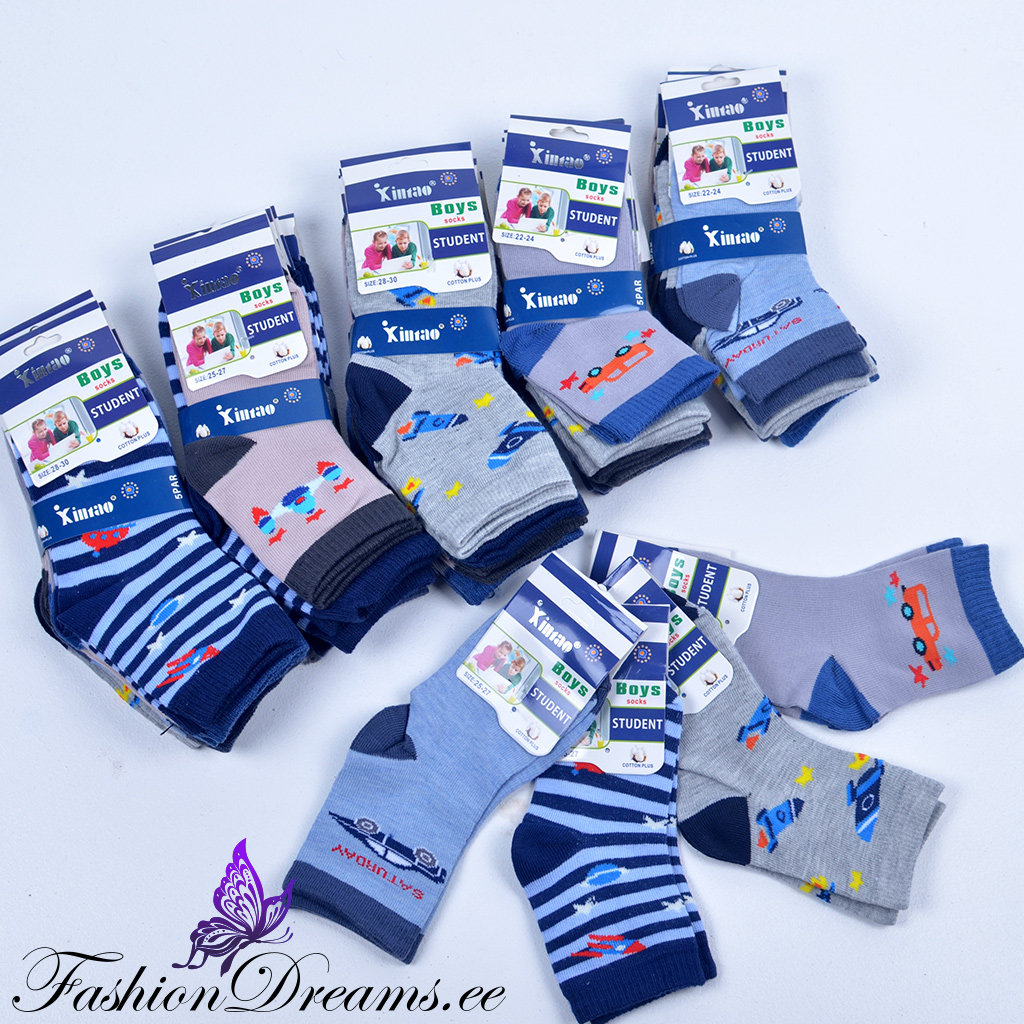 * 5 paari pakis – mix värvid/pildid (poistele sobivates toonides; peal erinevad autod, raketid jms)