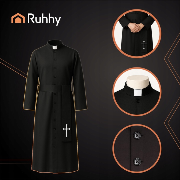 * Klassikaline must sutaan koos valge krae ja ristiga loob realistliku ning äratuntava vaimuliku välimuse, mis sobib nii humoorikale kostüümipeole kui ka tõsise teatrirolli jaoks.