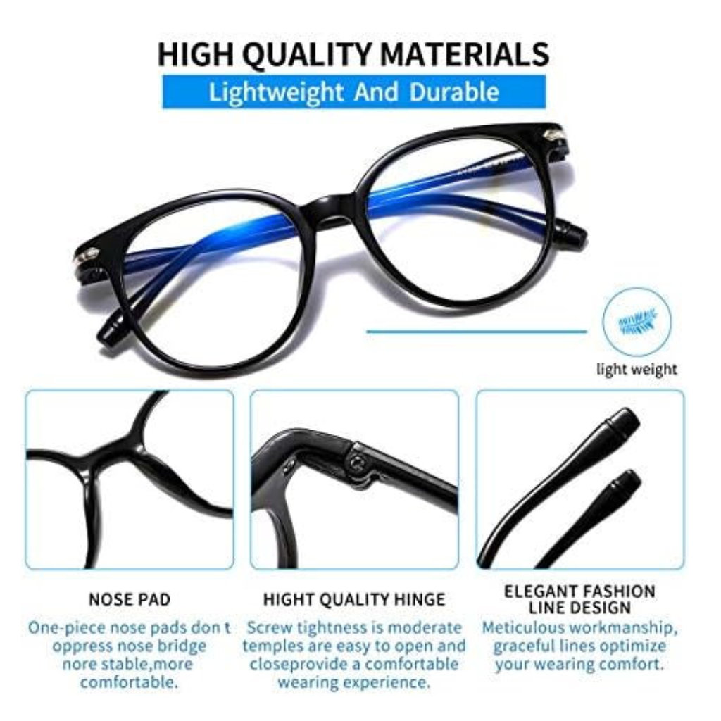 * Sinist valgust filtreerivate klaasidega, mis kaitsevad silmi arvuti jm seadetest tuleva kahjuliku ja silmi väsitava sinise valguse eest.