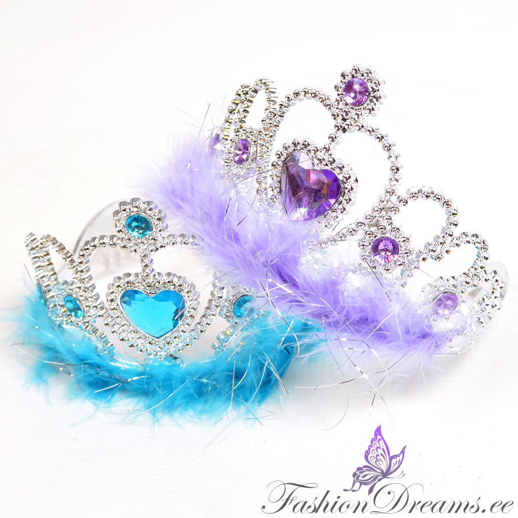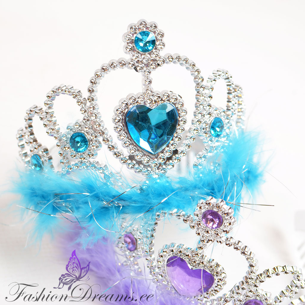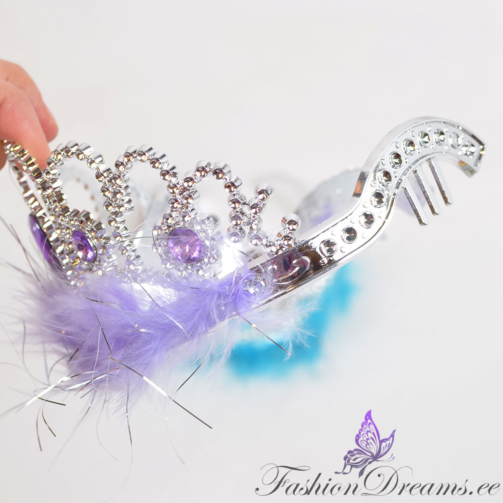 * Hõbedane kroon, kaunistatud kristallide ja sulgedega